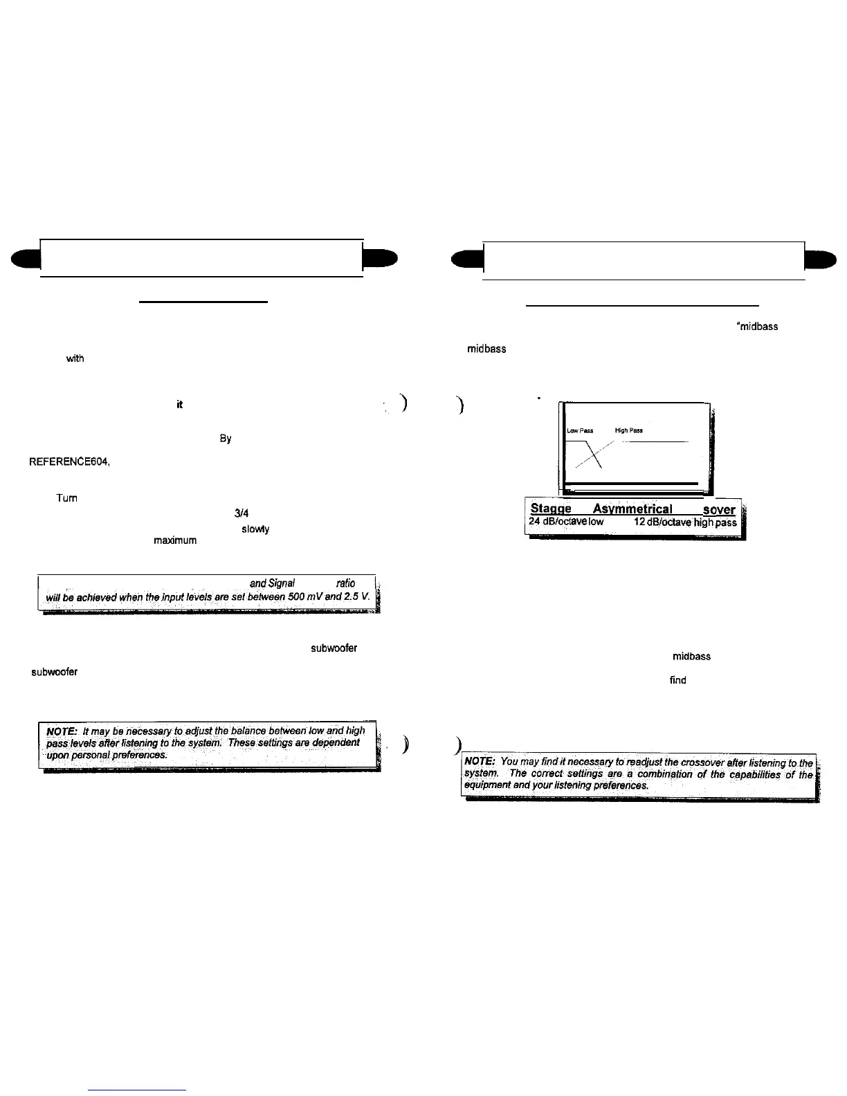 asymmetrical electronic crossover. The high and low pass portions of the