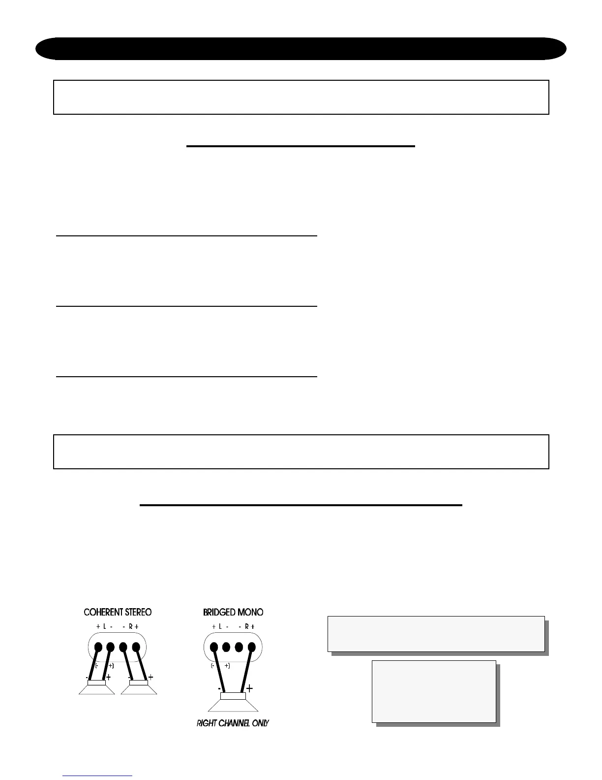 operation. It is also used when large amounts of power are necessary for single speakers. In bridged mono,