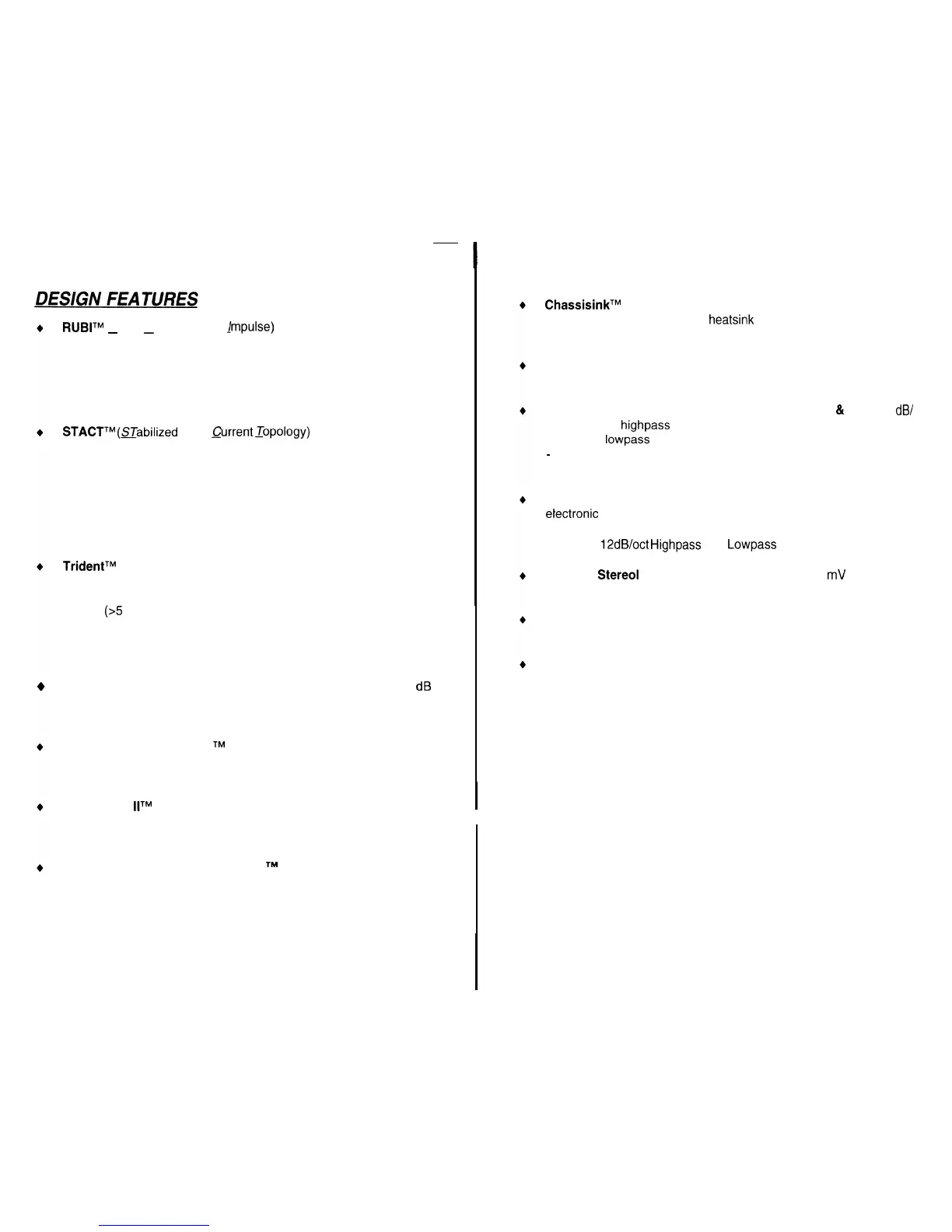 crossovers variable from 30 to 120 Hz. 555 on/y