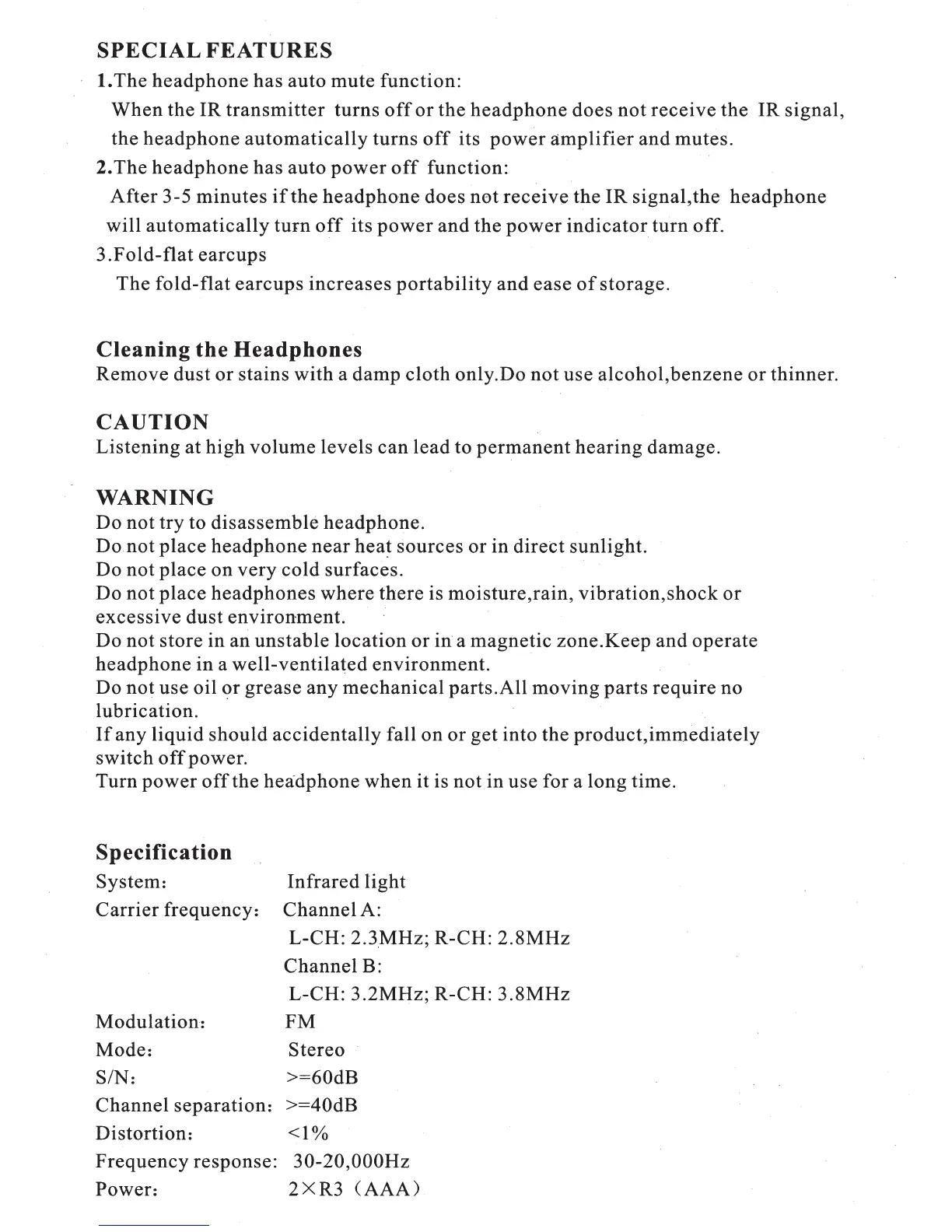 Soundstream VHP-12 - Special Features; Auto Mute Function; Auto Power Off Function; Fold-flat Earcups