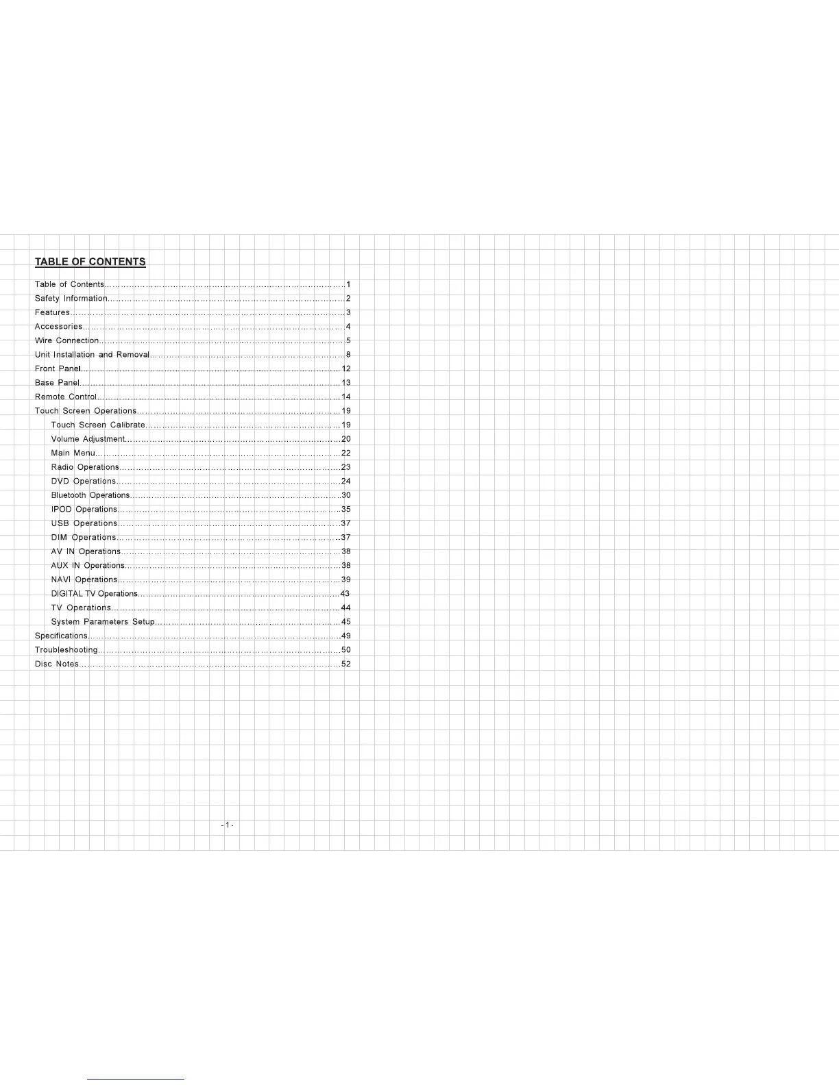 Soundstream VIR-7022 - Table of Contents