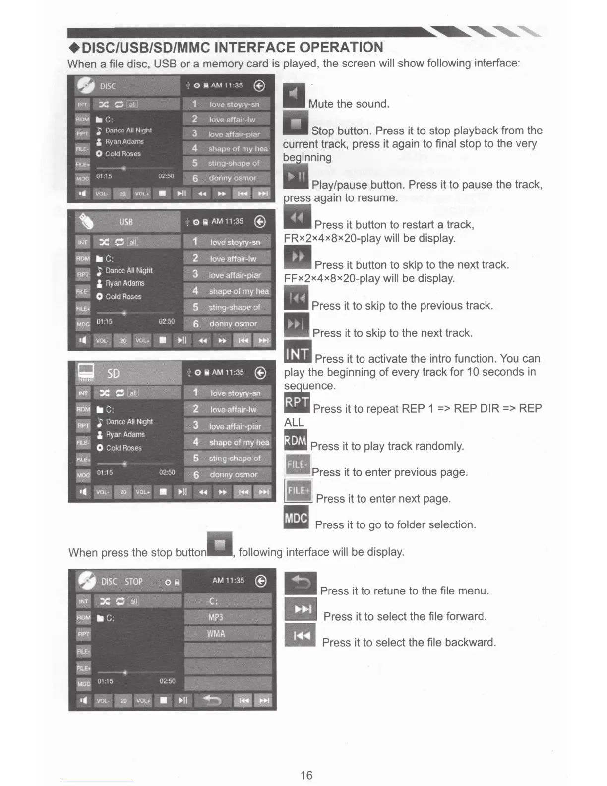 +DISC/USB/SD/MMC INTERFACE OPERATION