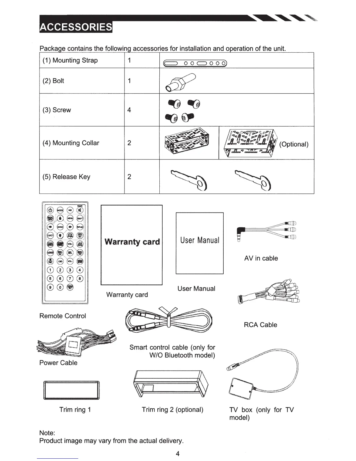 Packa e contains the followin accessories for installation and o eration