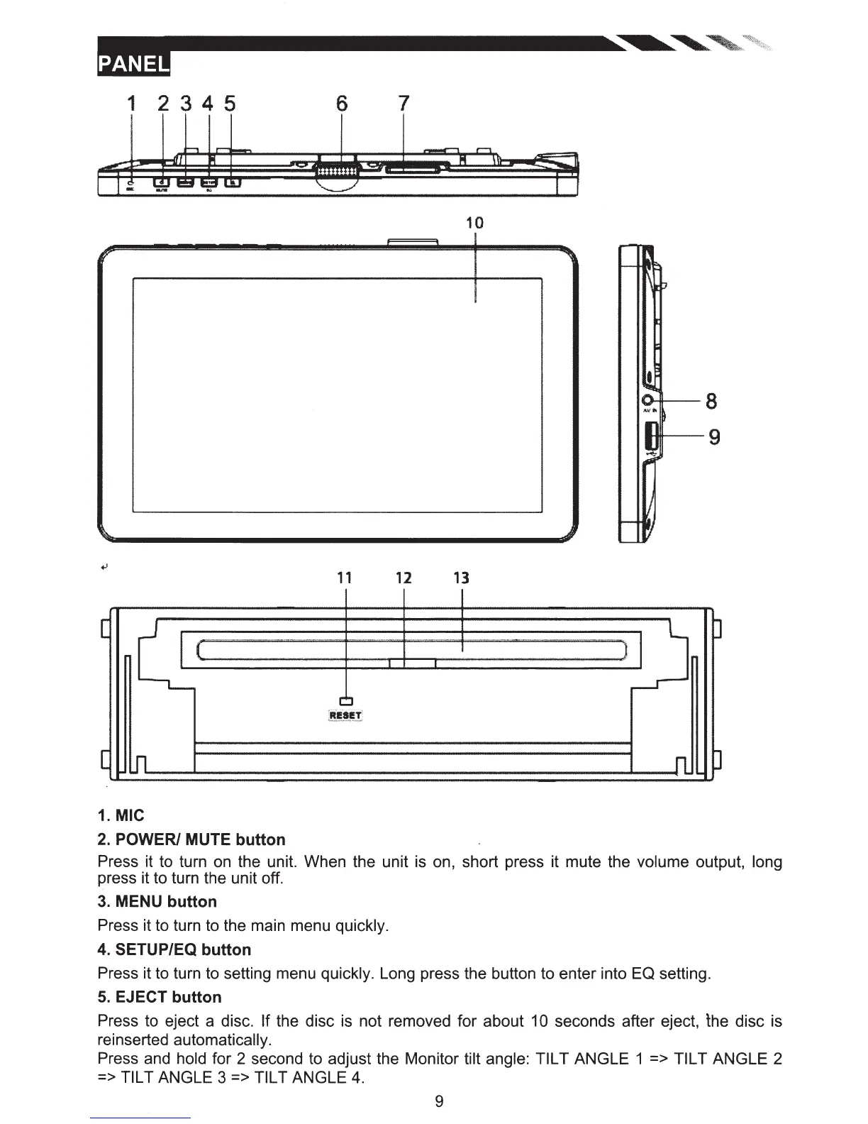 Press and hold for 2 second to adjust the Monitor tilt angle: TILT ANGLE 1