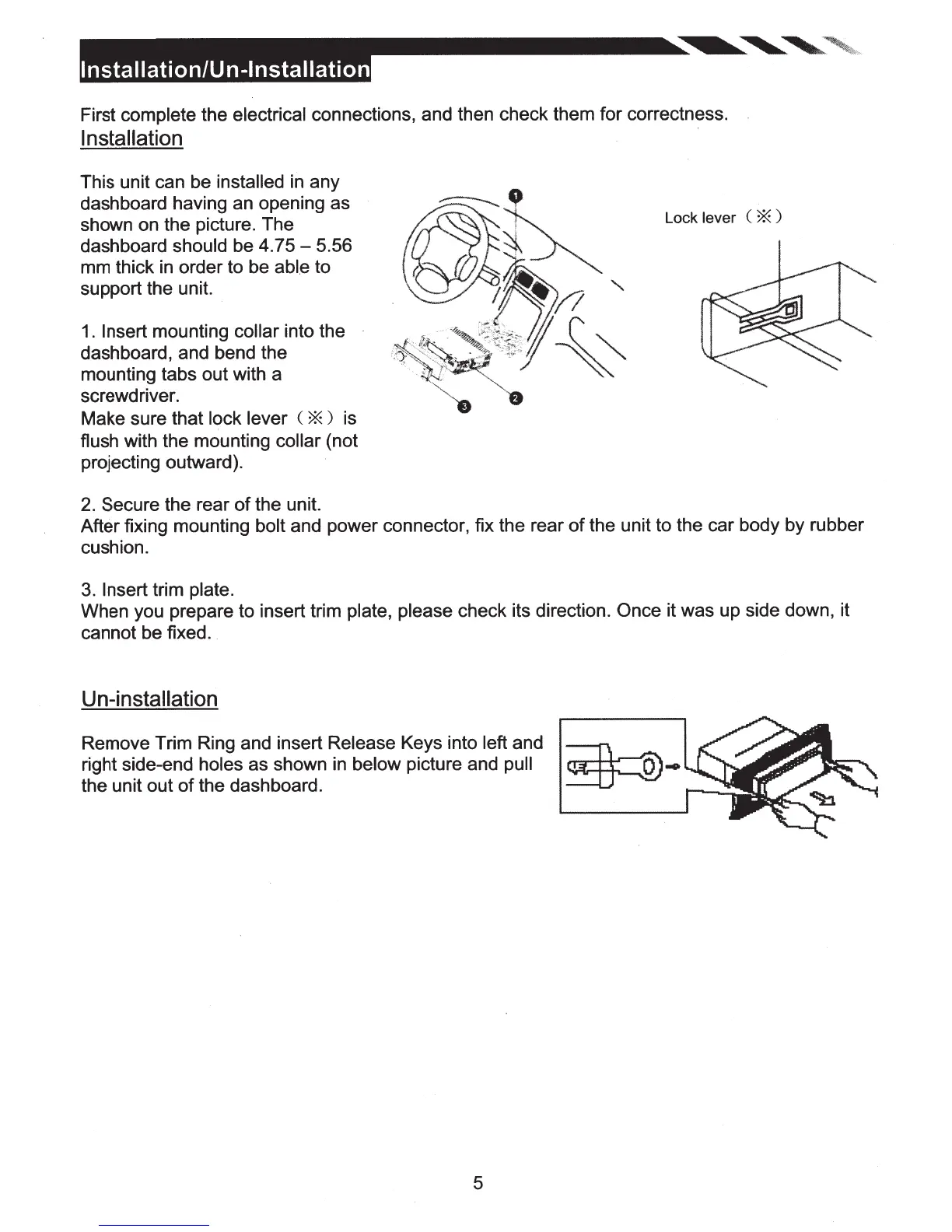 When you prepare to insert trim plate, please check its direction.
