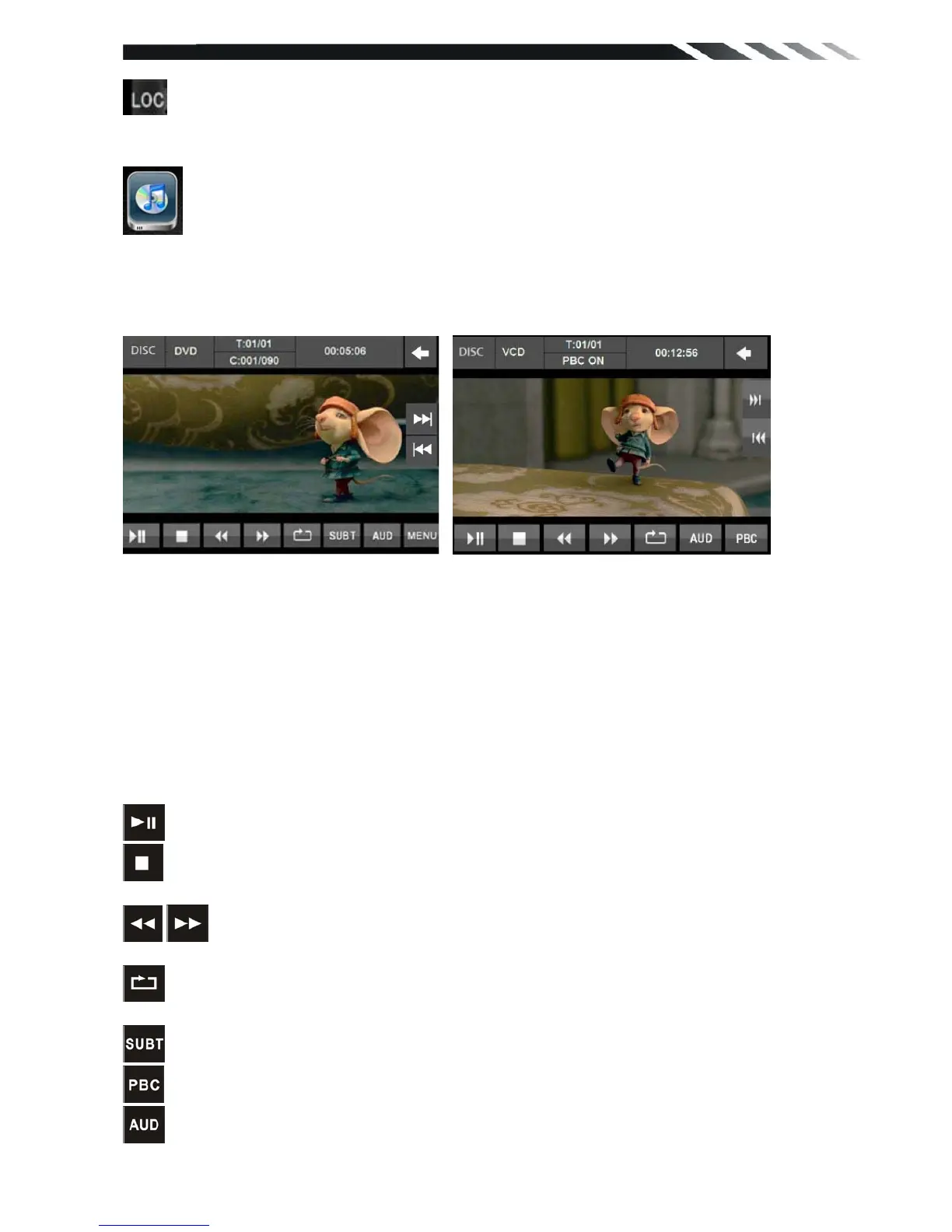 function); In VCD mode touch it can choose MONO L---MONO R---STEREO.
