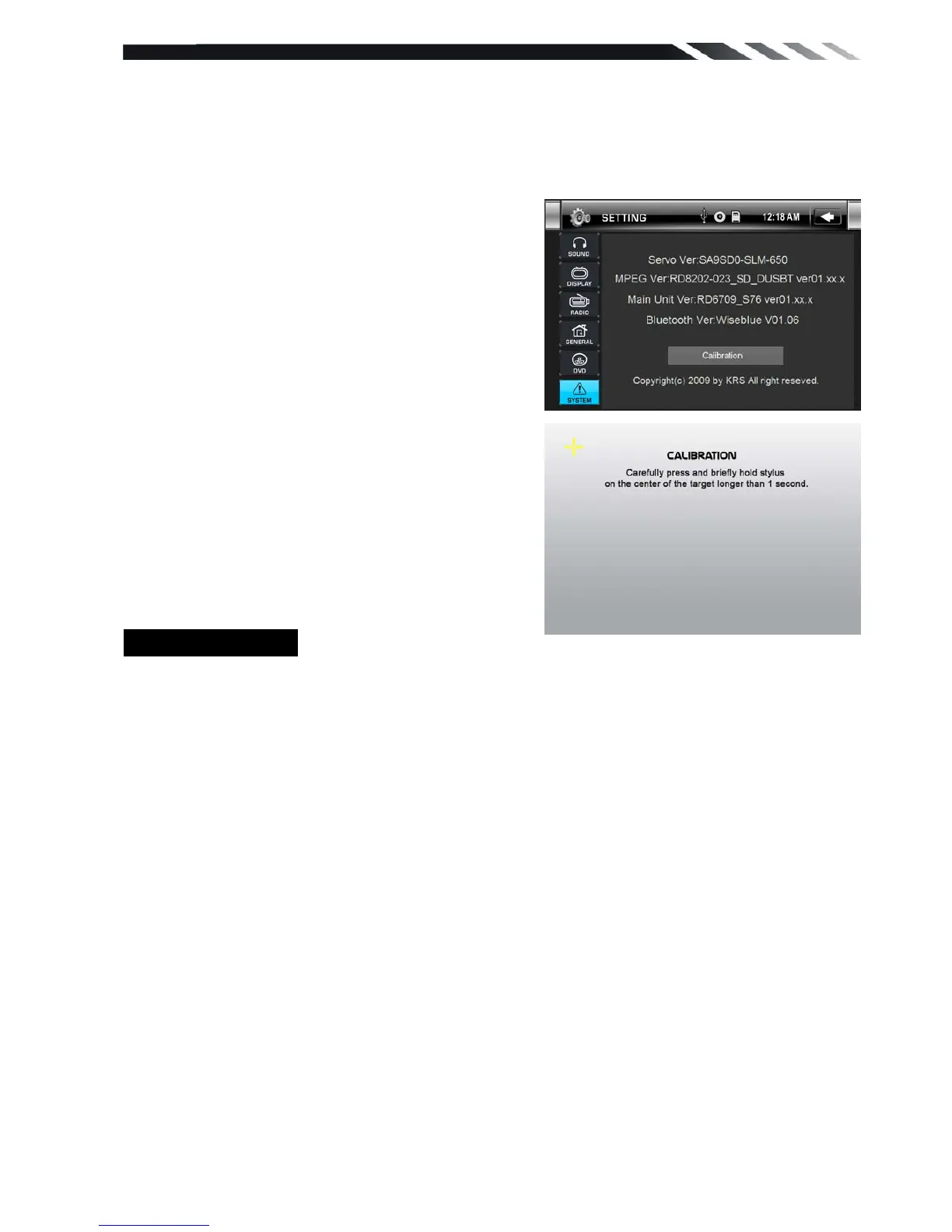 CALIBRATION procedure of the touch screen is