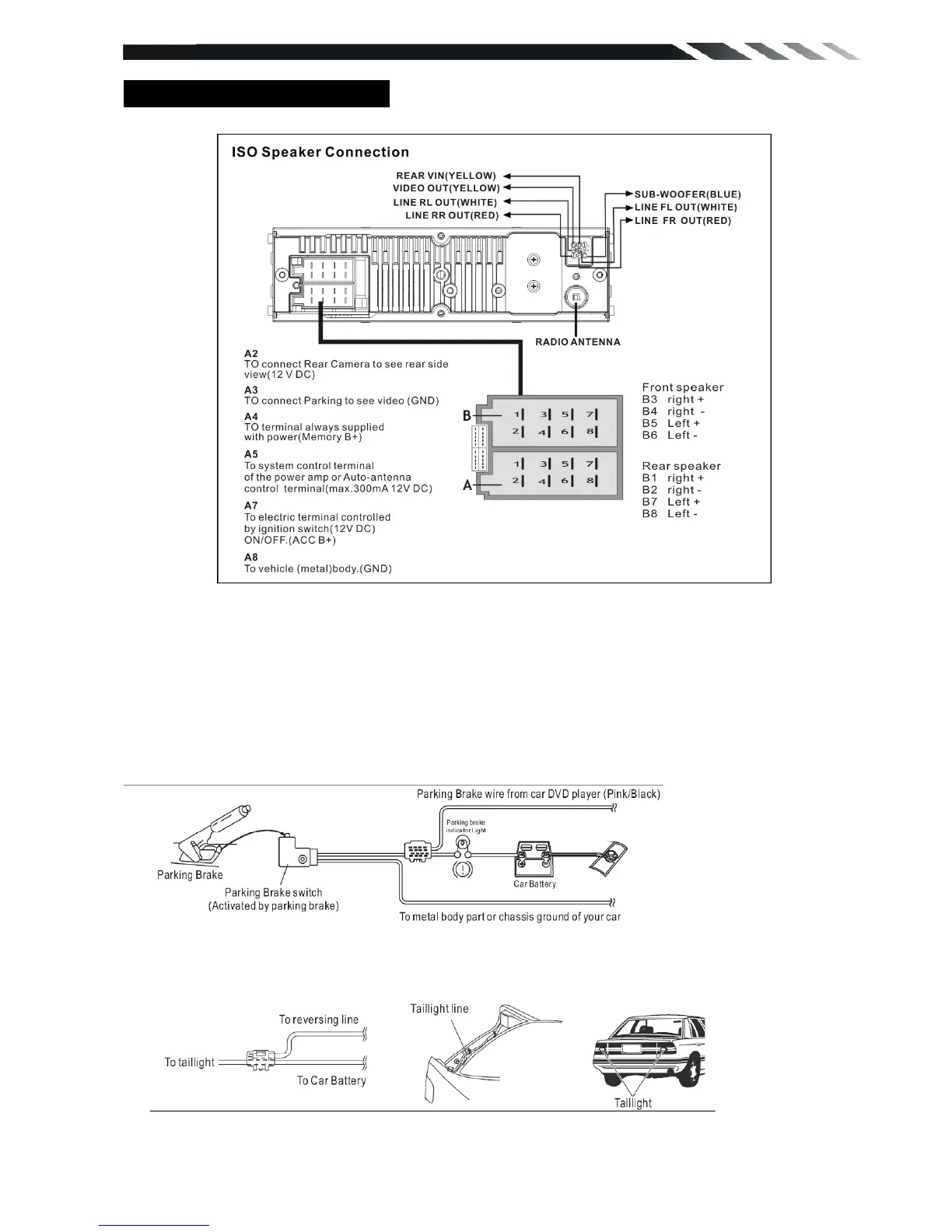 Note: The parking wire is connected with brake signal; for safety, the programs can be seen on