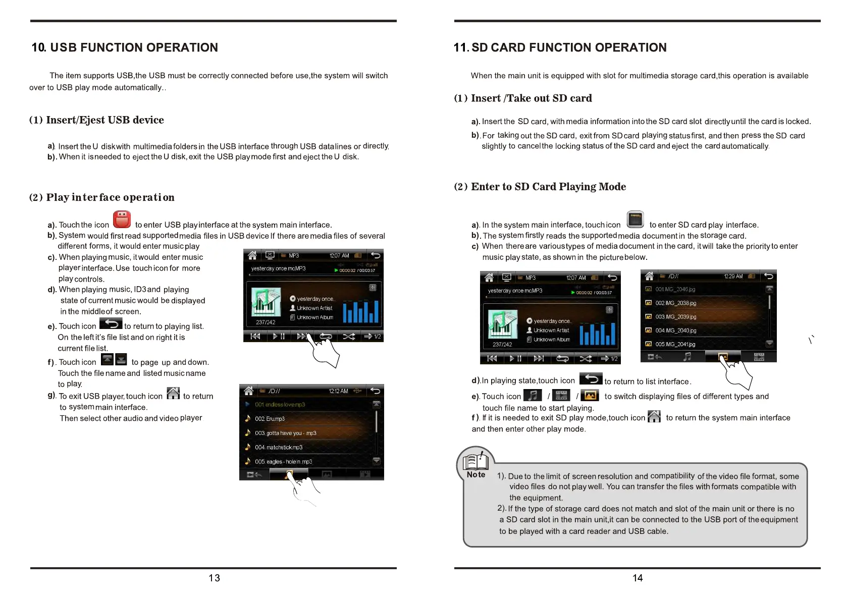 Soundstream VR-620HB - USB Function Operation; Insert;Eject USB Device; Play Interface Operation; SD Card Function Operation