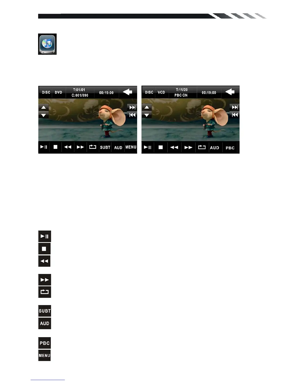 function);In VCD mode touch it can choose MONO L---MONO R---STEREO.