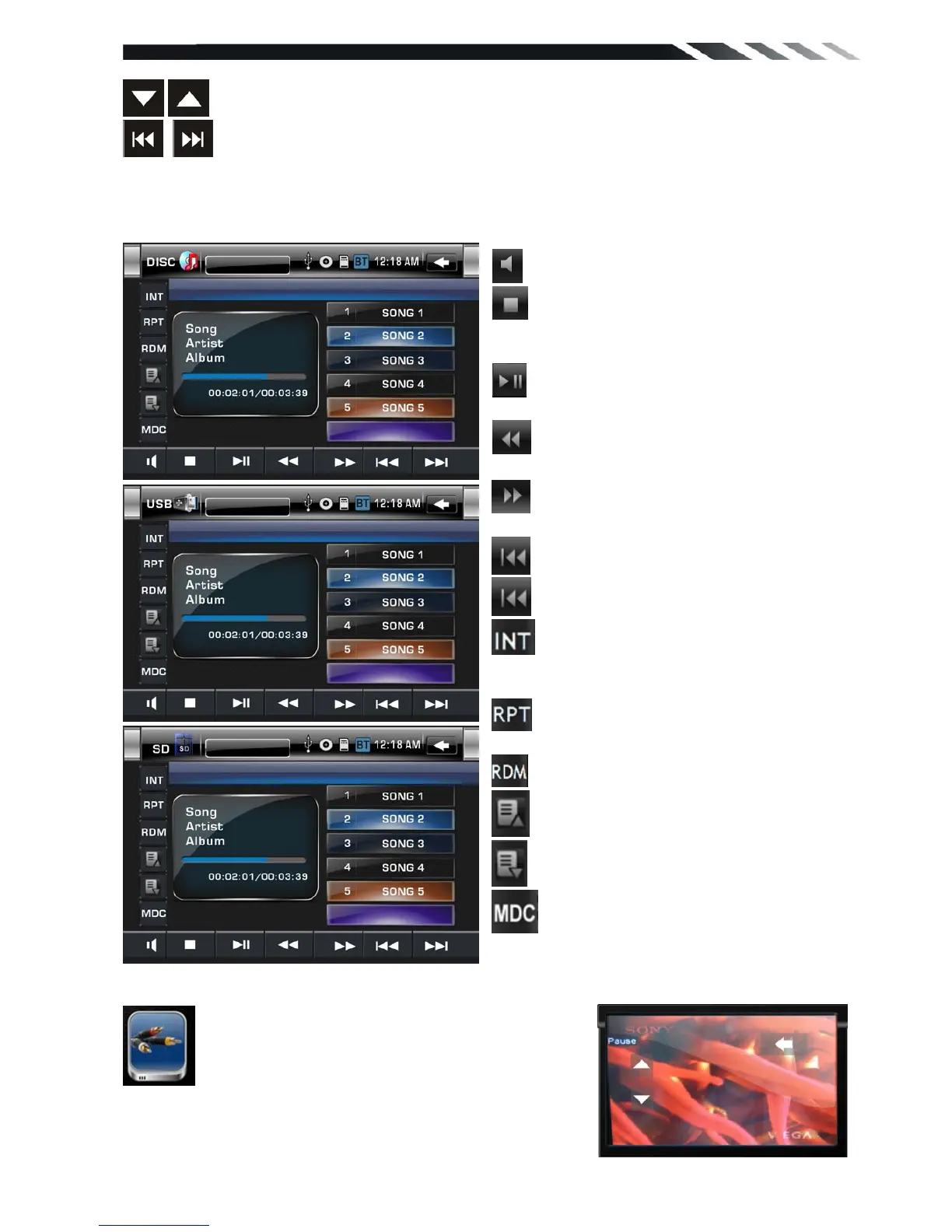 When a file disc, USB or a memory card is played, the screen will show following interface: