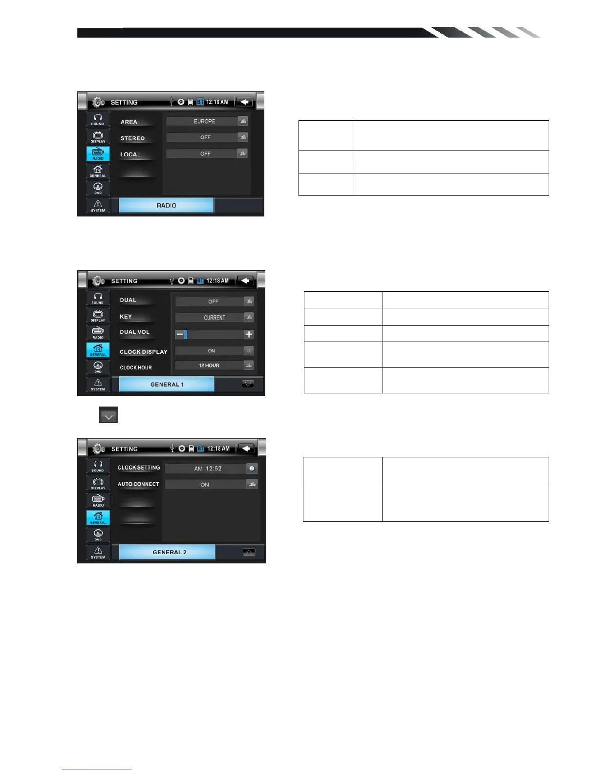 Tap RADIO button to show RADIO menu.