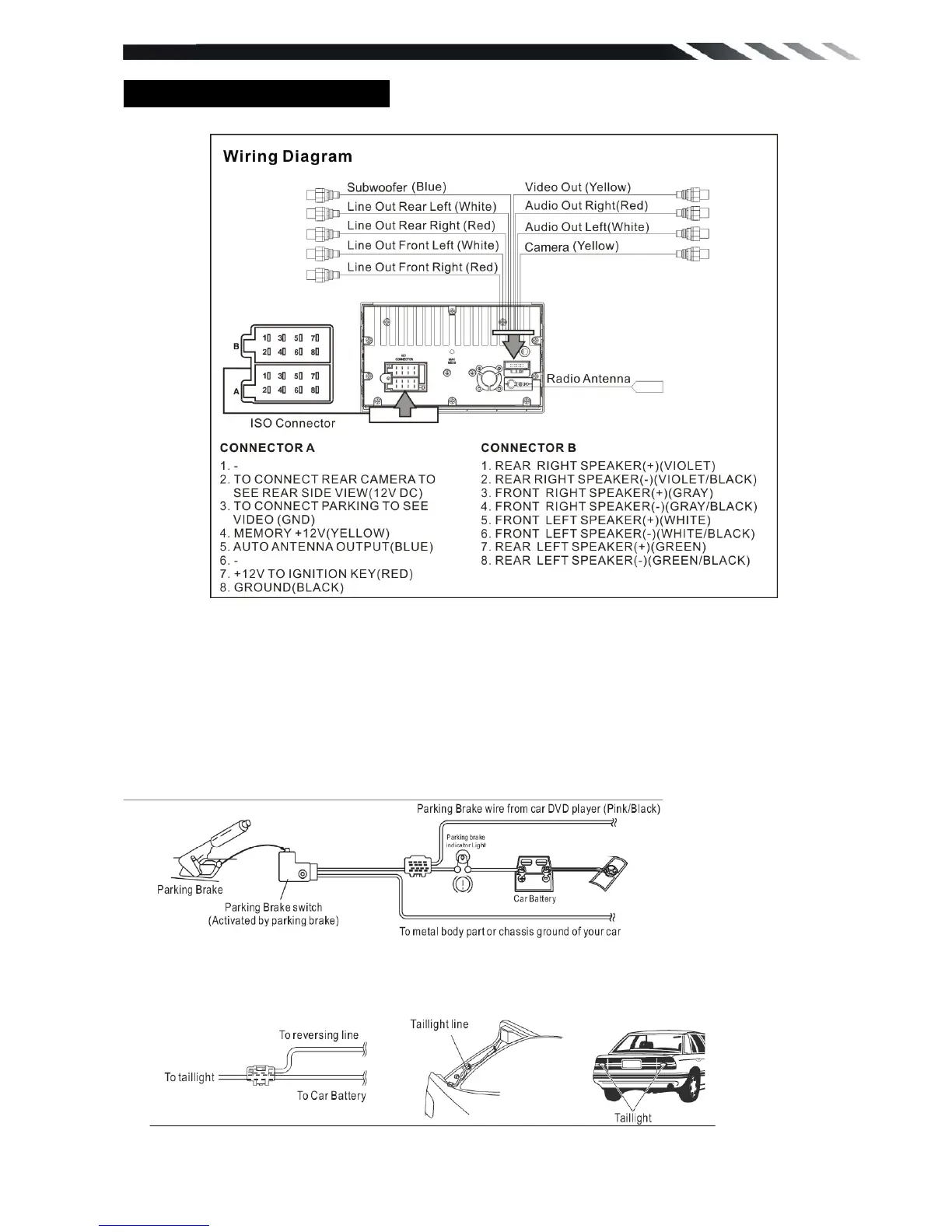 Note: The parking wire is connected with brake signal; for safety, the programs can be seen on
