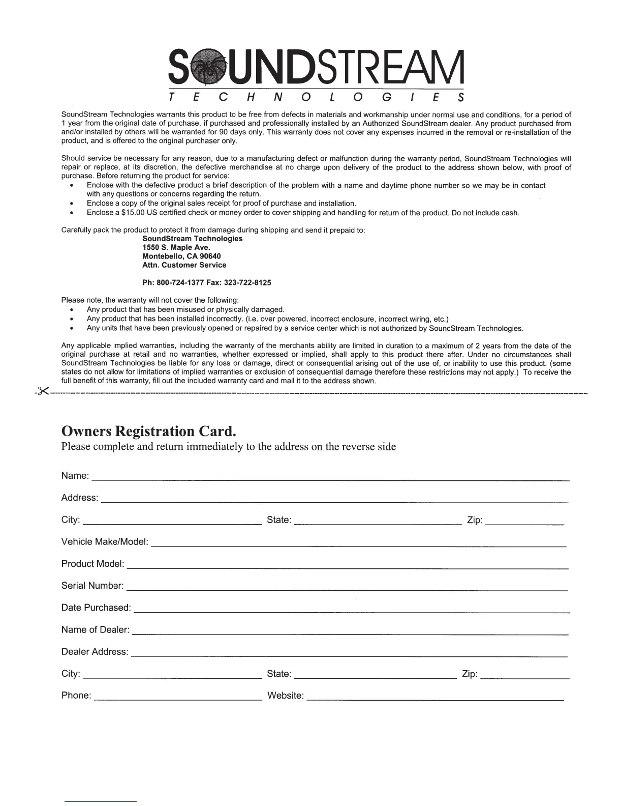 SoundStream Technologies warrants this product