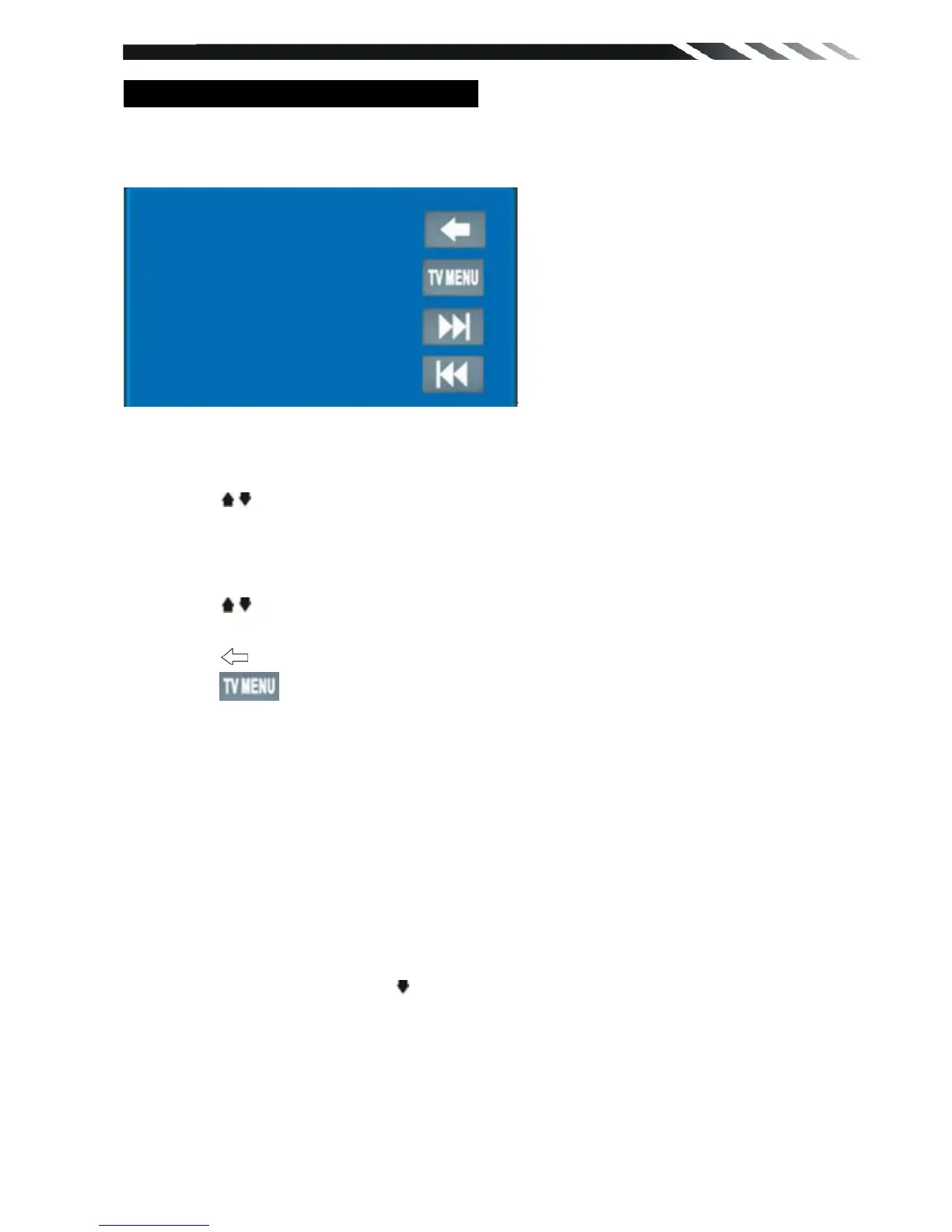 1. In TV mode, press the Play/Pause buttons on remote once to enter TV menu setting, or