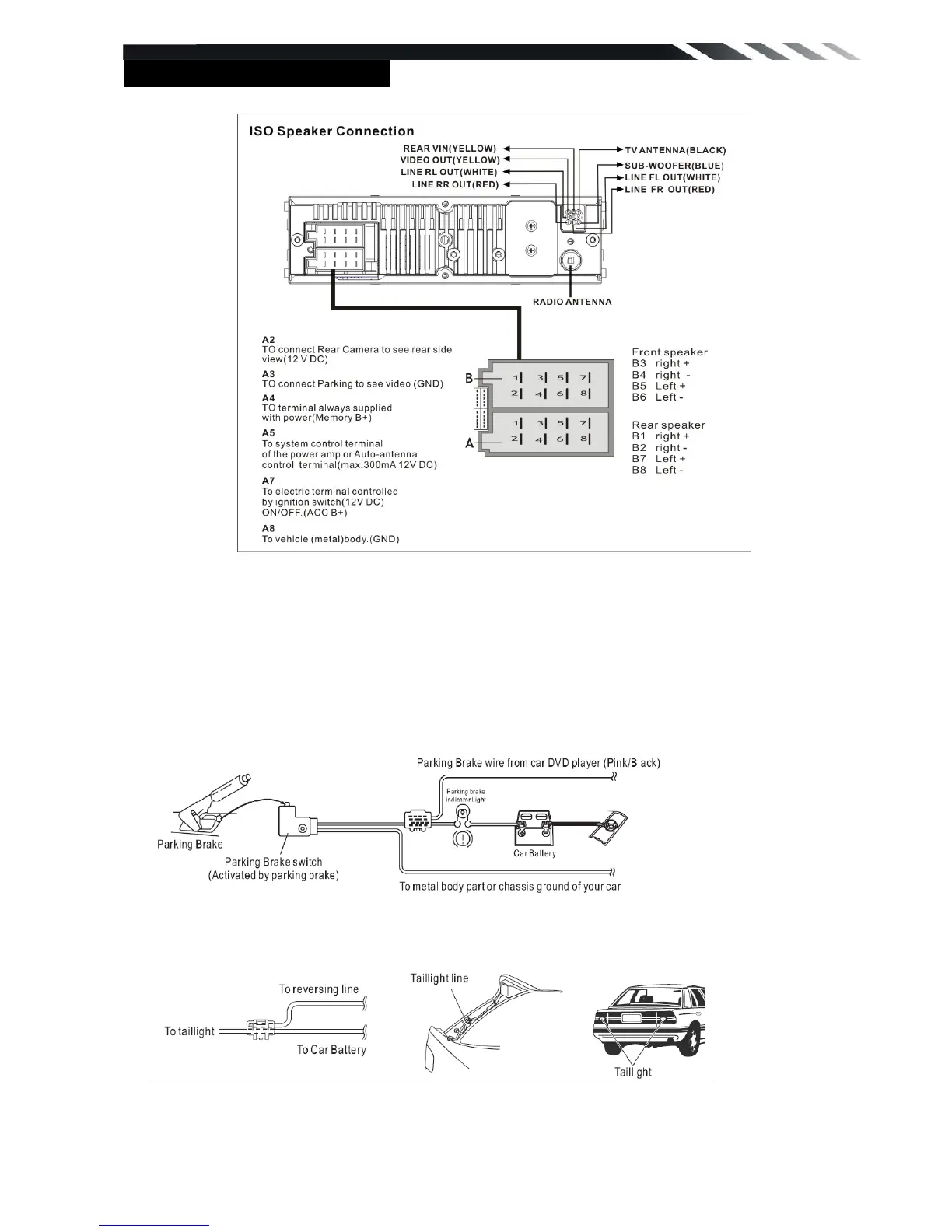 Note: The parking wire is connected with brake signal; for safety, the programs can be seen on