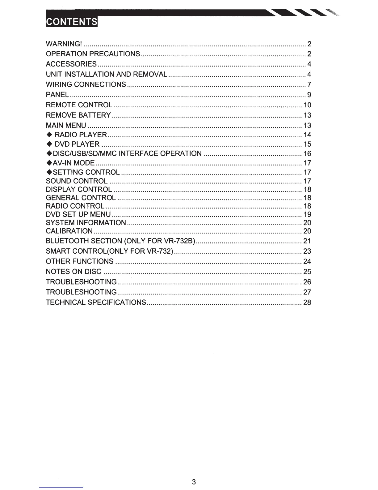 BLUETOOTH SECTION (ONLY FOR VR-732B) ......................................................