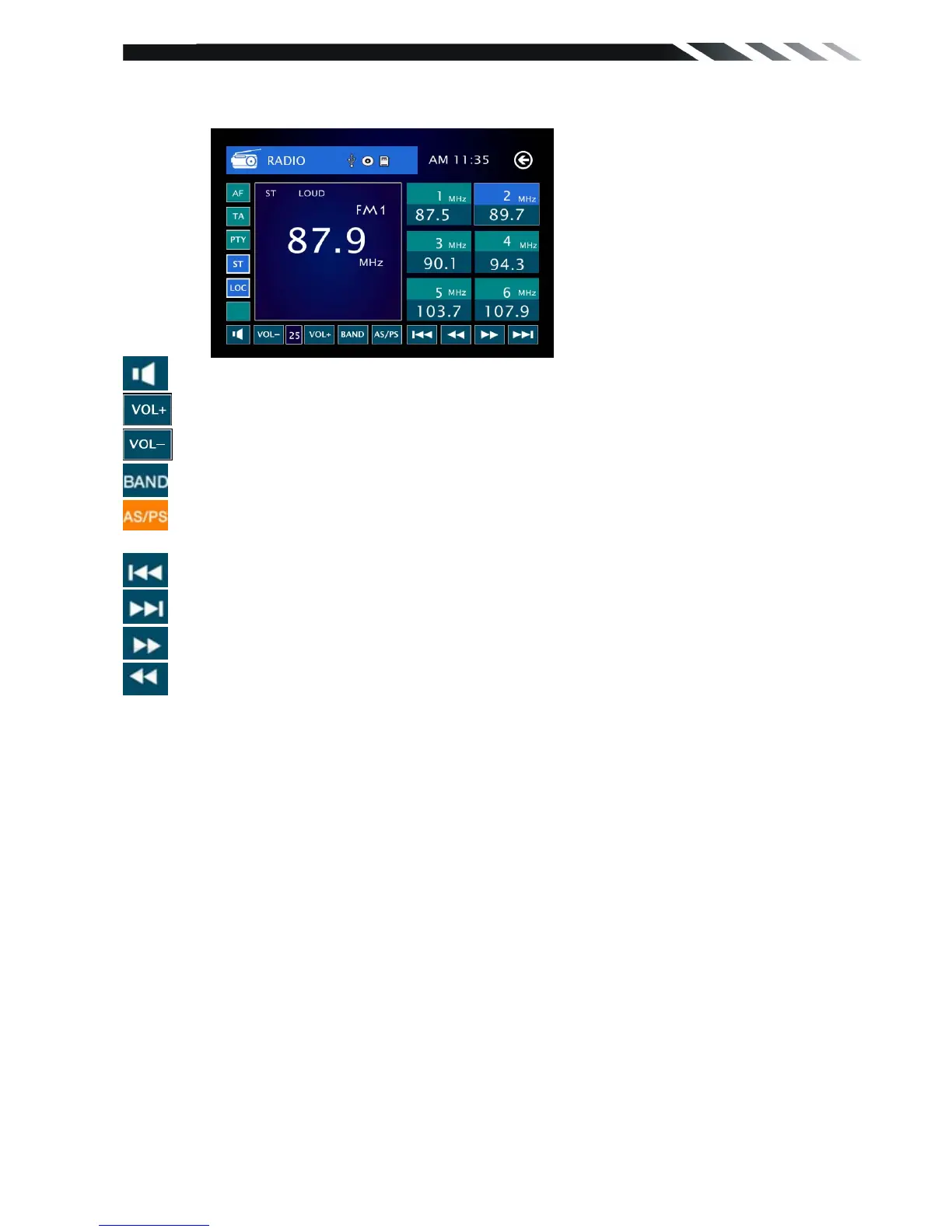 Touch this button can scan the stations from 1-6, long touch it to save the stations with