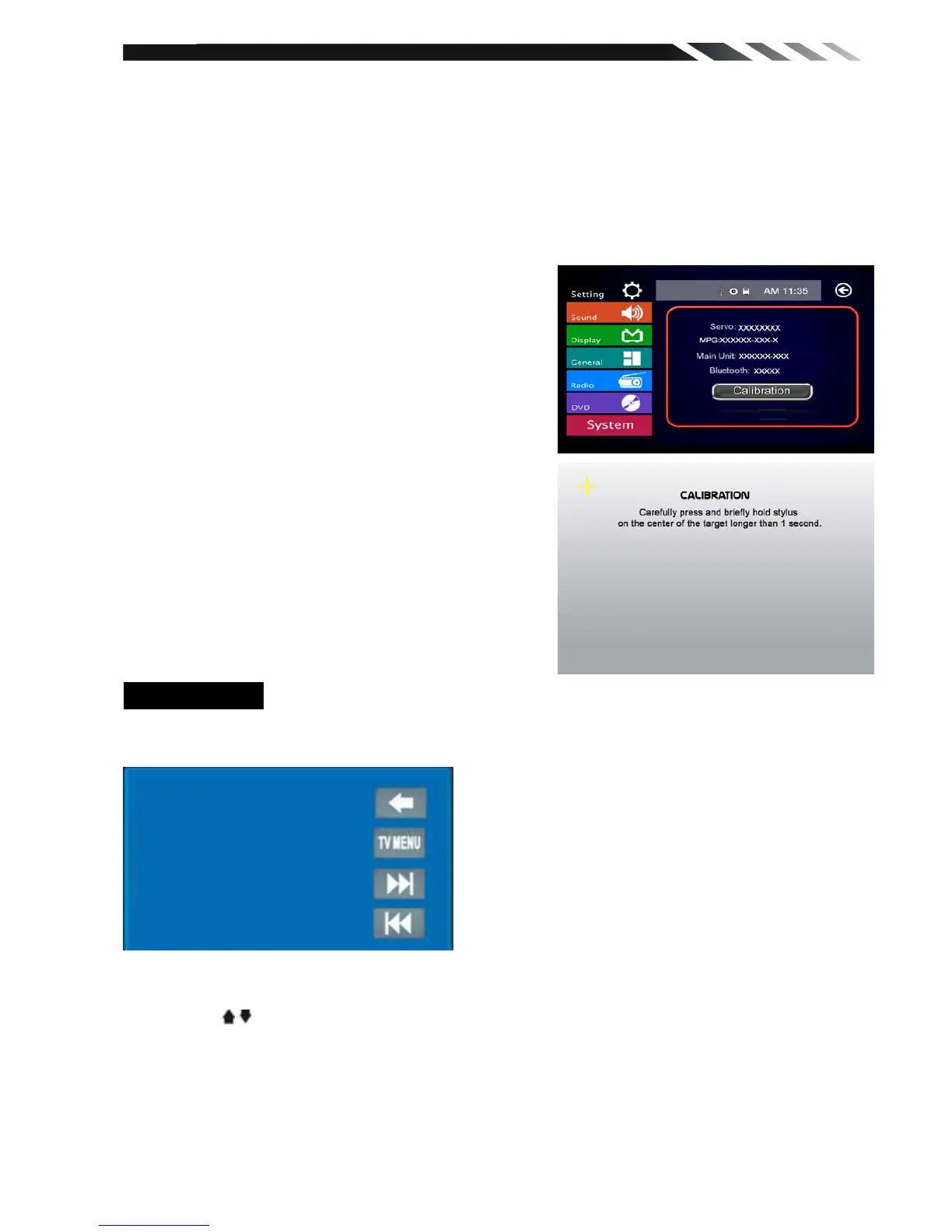 CALIBRATION procedure of the touch screen is