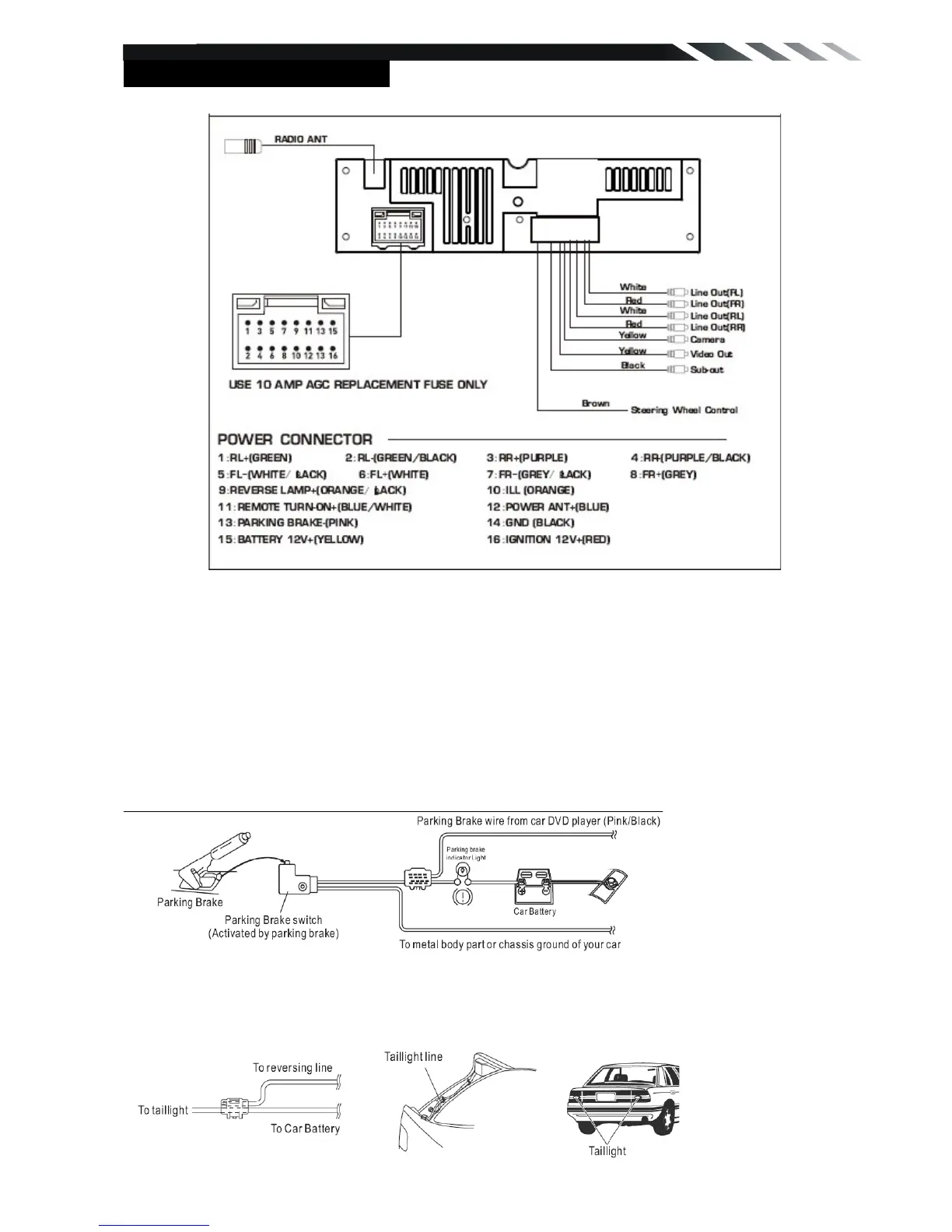 Note: The parking wire is connected with brake signal; for safety, the programs can be seen on