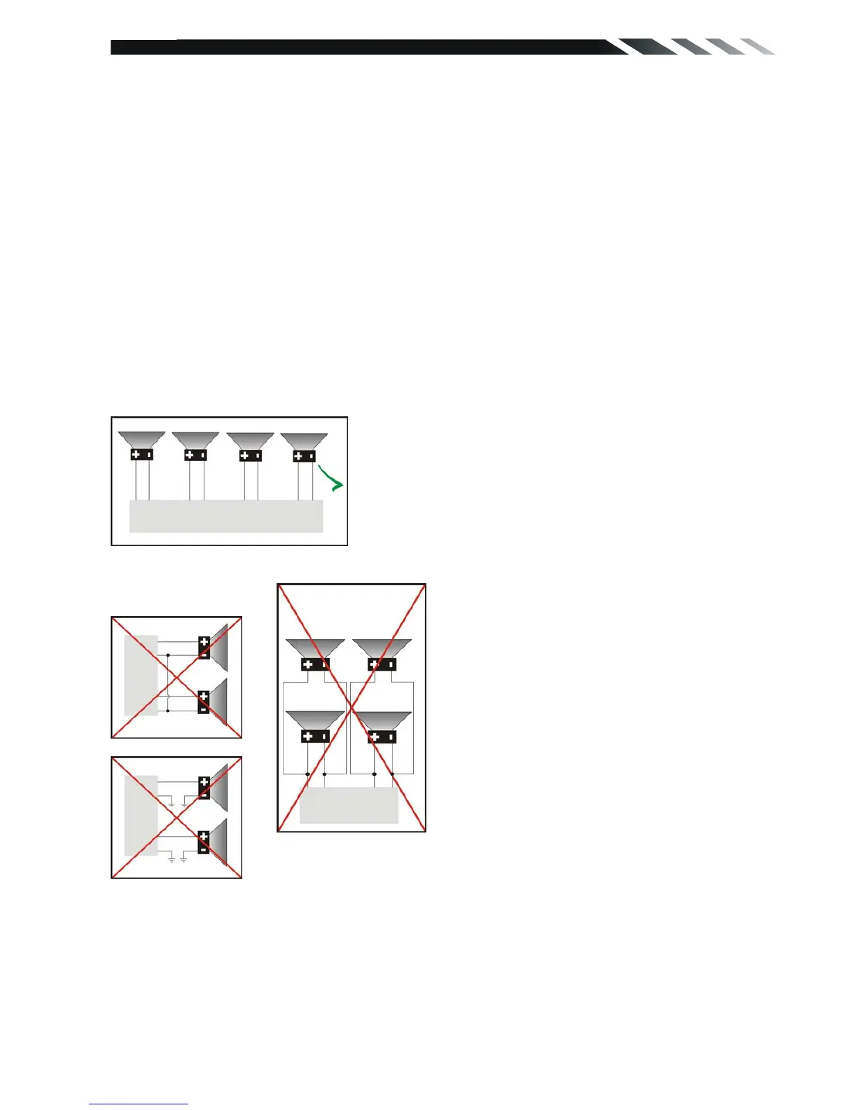 Connect the speakers according the following diagram, incorrect connections will damage the
