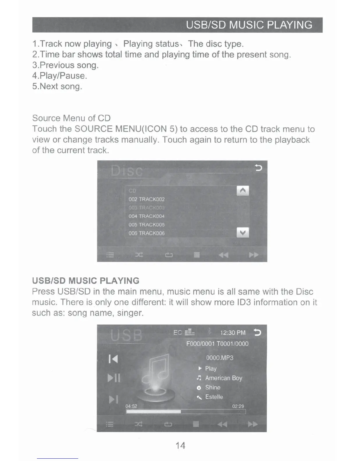 Touch the SOURCE MENU(ICON 5) to access to the CD track menu to