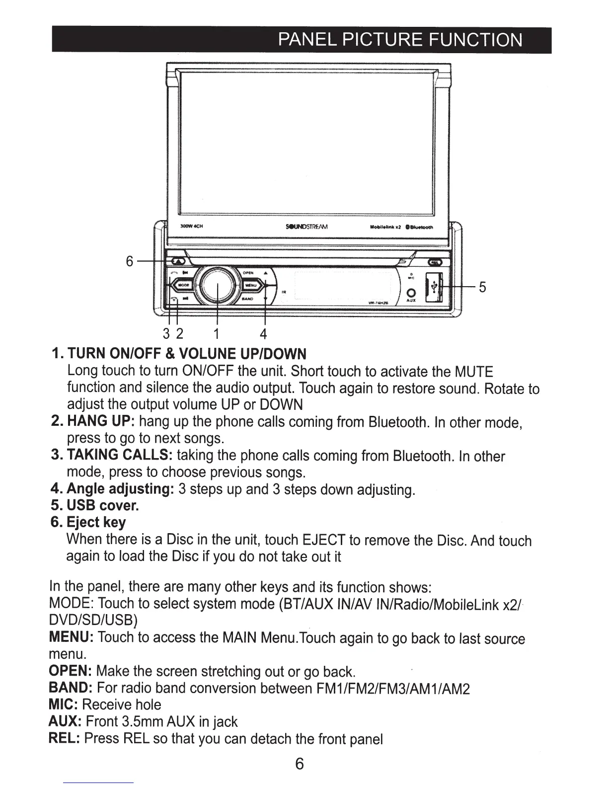 Soundstream VR-74H2B - Panel Picture Function