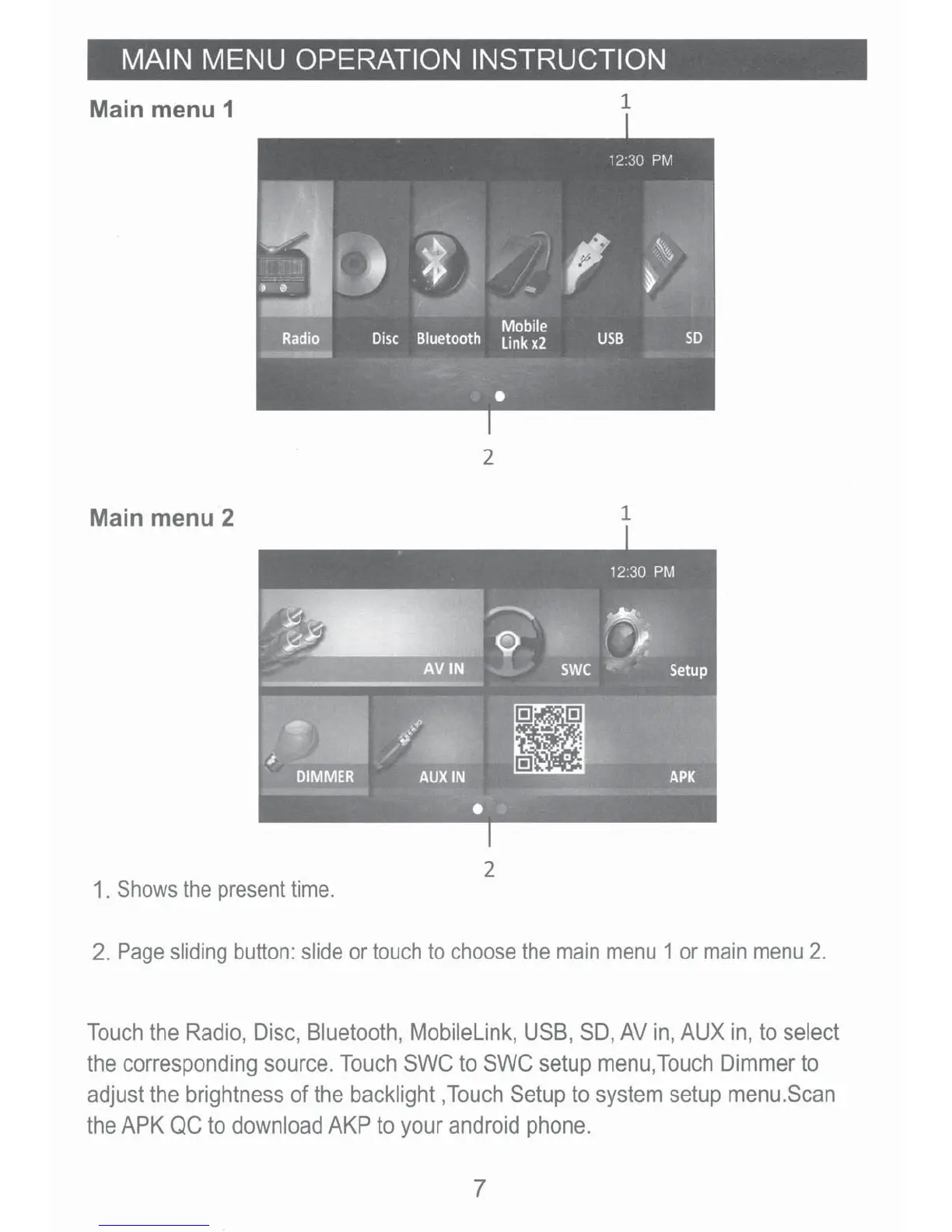 MAIN MENU OPERATION INSTRUCTION