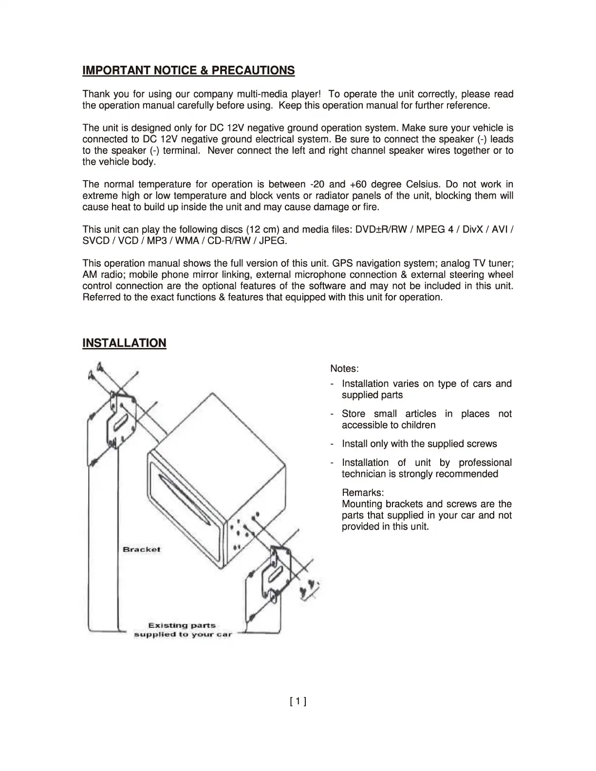 This unit can play the following discs (12 cm) and media files: DVD±R/RW / MPEG 4 / DivX / AVI /