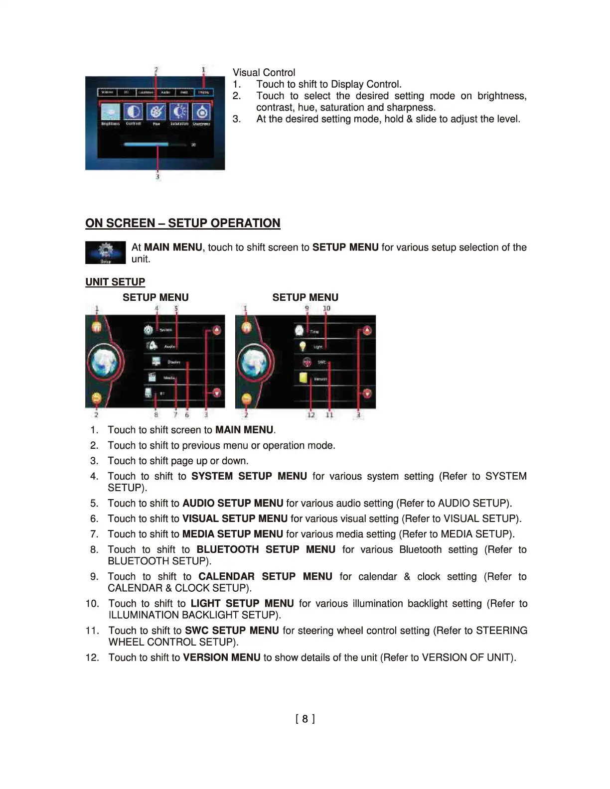 5. Touch to shift to AUDIO SETUP MENU for various audio setting (Refer to AUDIO SETUP).