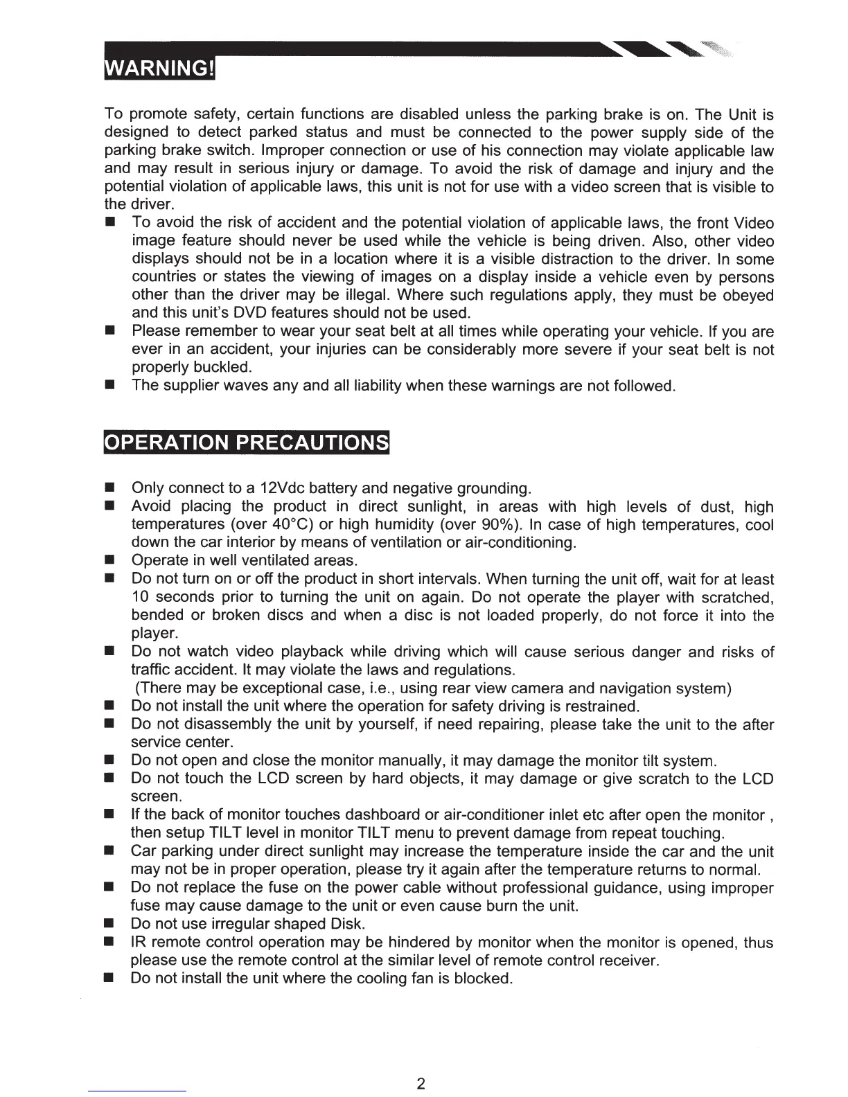 OPERATION PRECAUTIONS