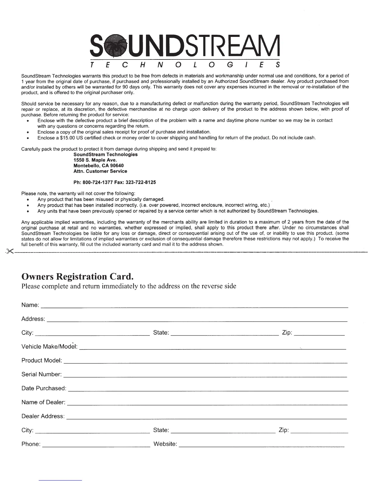 SoundStream Technologies warrants this product to