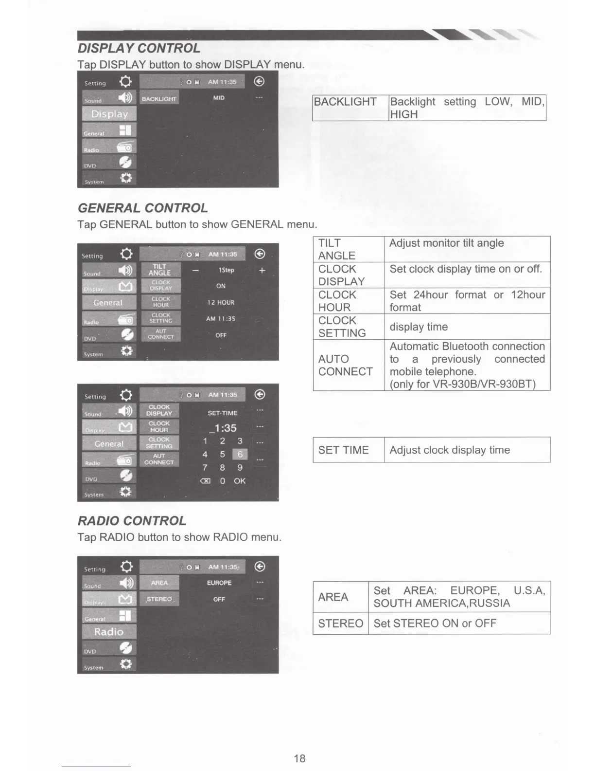 Tap RADIO button to show RADIO menu.