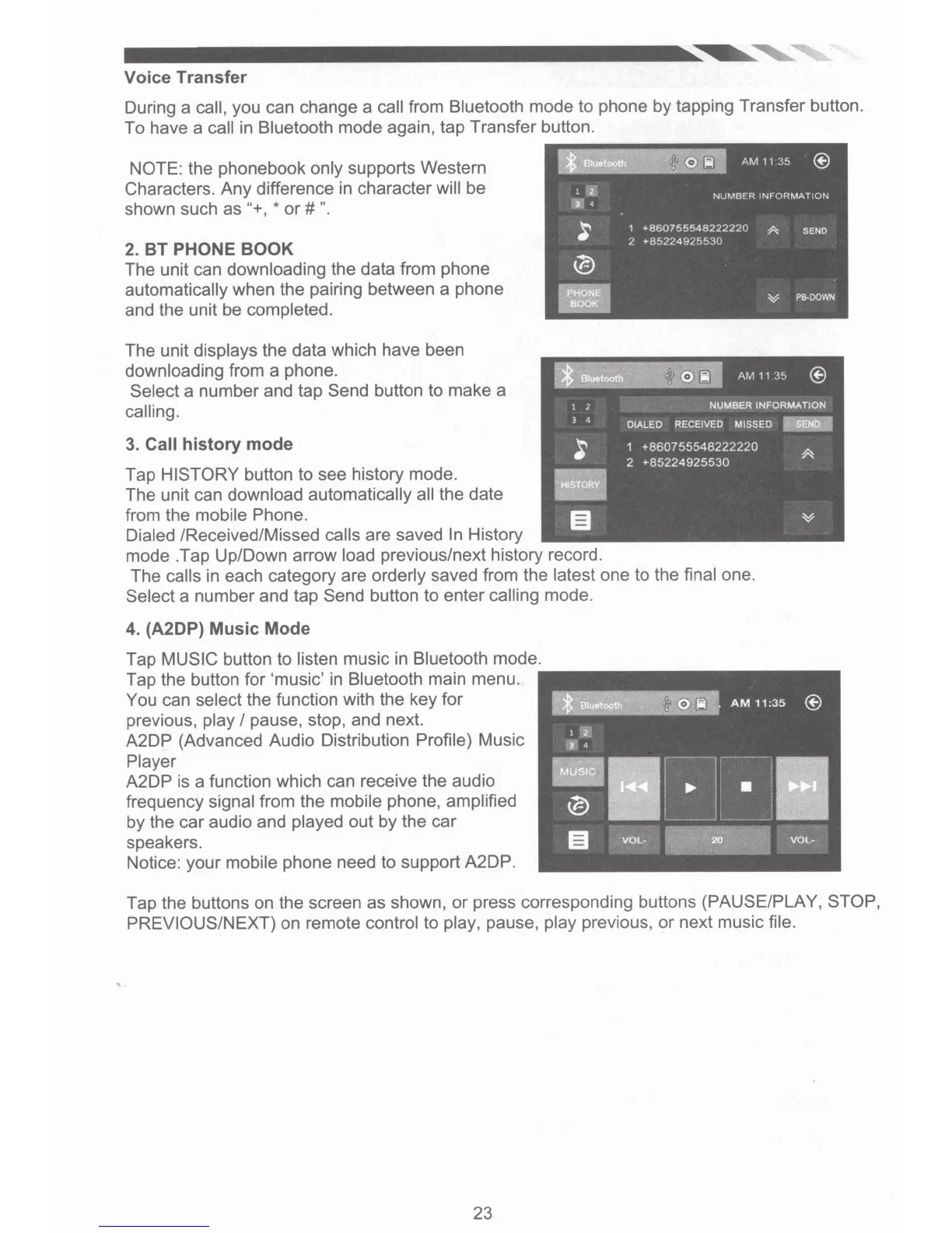 Bluetooth mode again, tap Transfer button.
