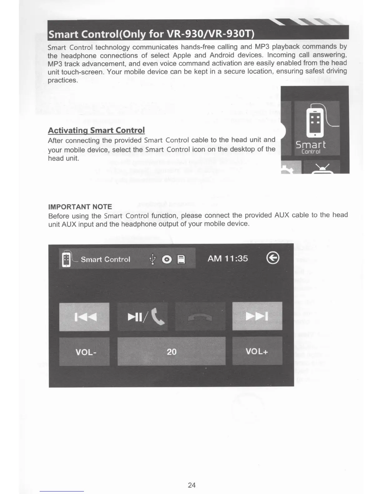 Soundstream VR-930BT - Smart Control Functions; Activating Smart Control