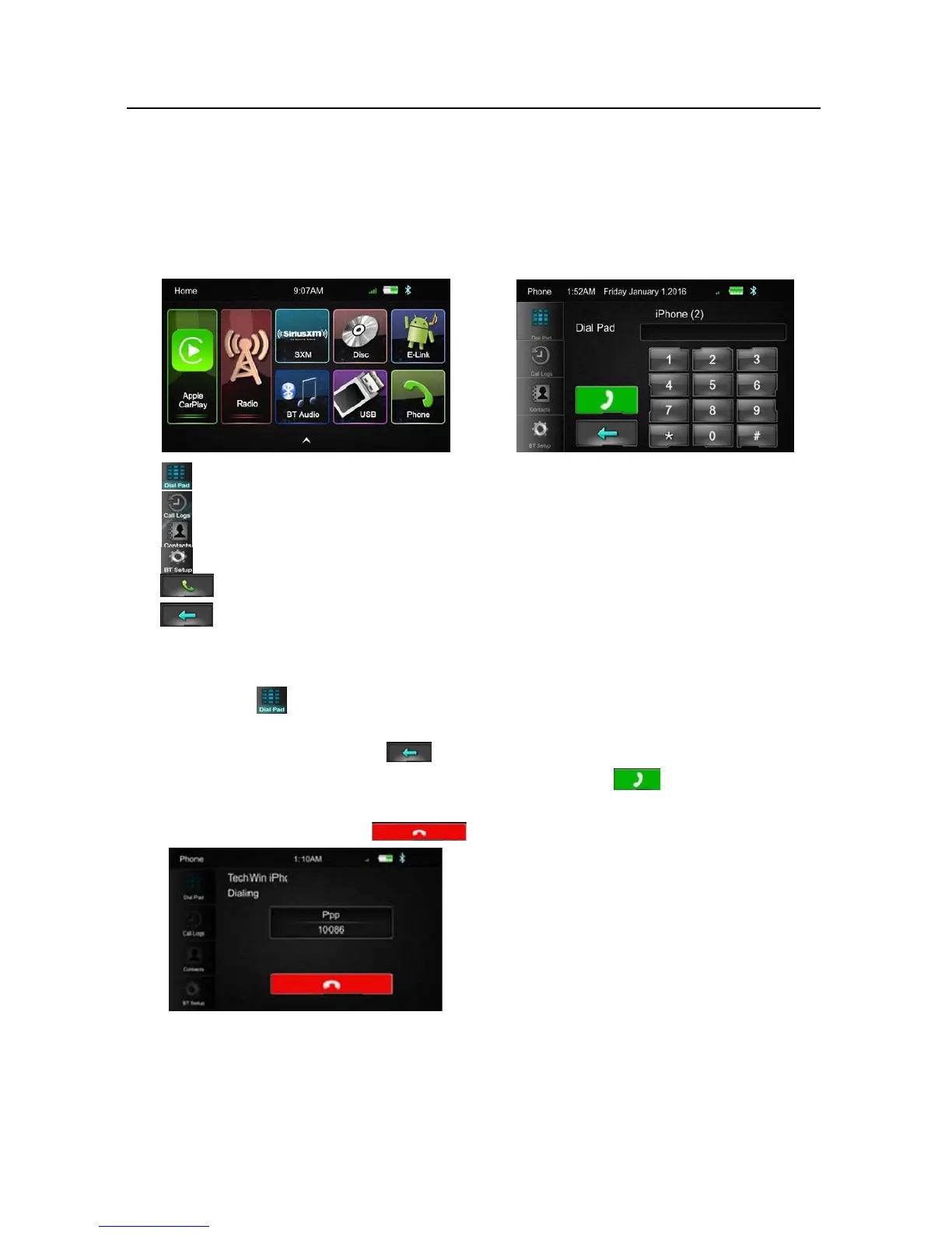 UnitviaBluetooth(HFP),usercanthroughtheHeadunittomakeaphonecall.Pleasenoteitneeds
