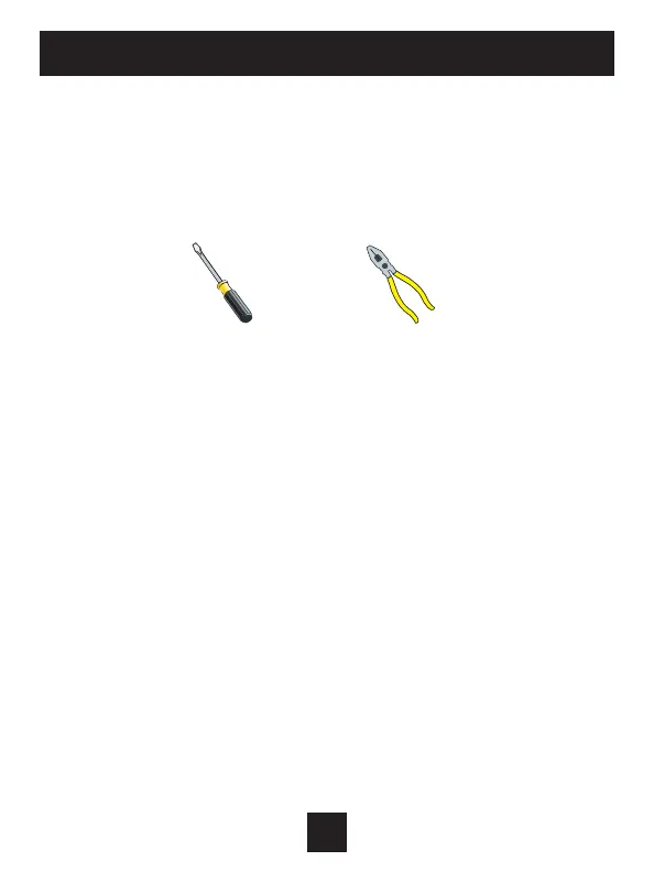 • Assemble tools: Flat blade screwdriver, wire cutters and wire