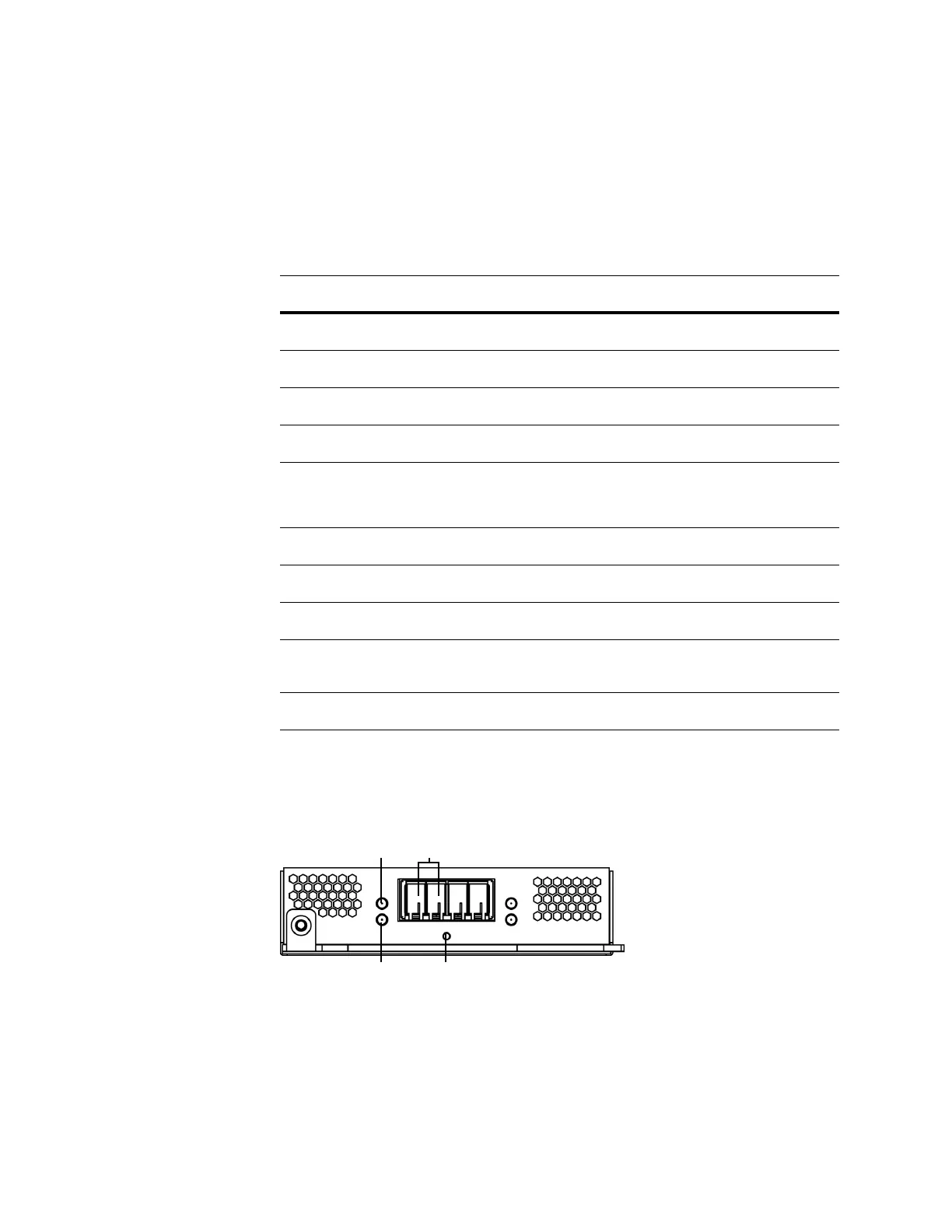 contains two fiber ports and link, activity, and bypass LEDs.