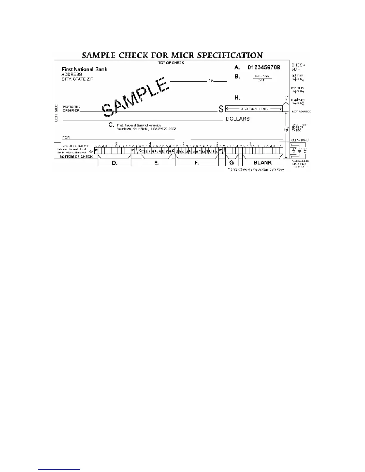 MICR line (see D for further explanation).
