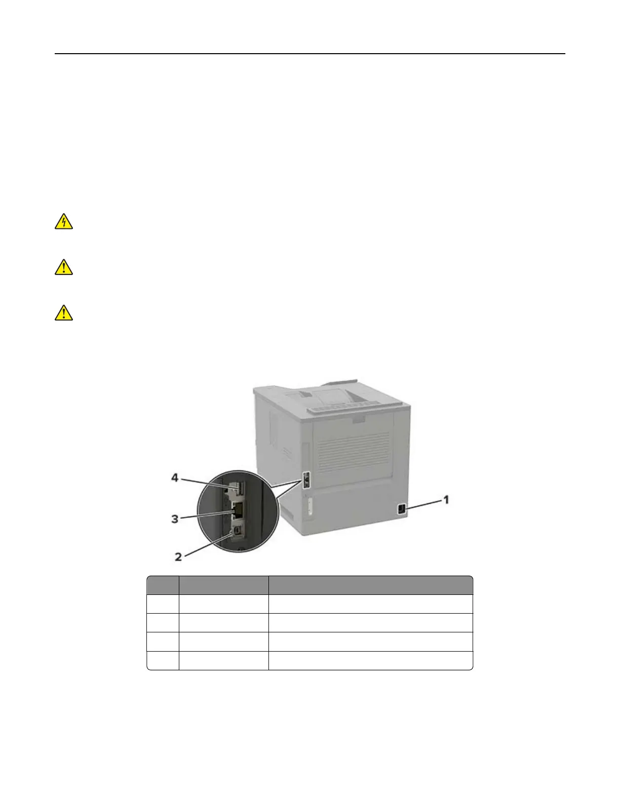 Warning—Potential Damage: To avoid loss of data or printer malfunction, do not touch the USB cable, any