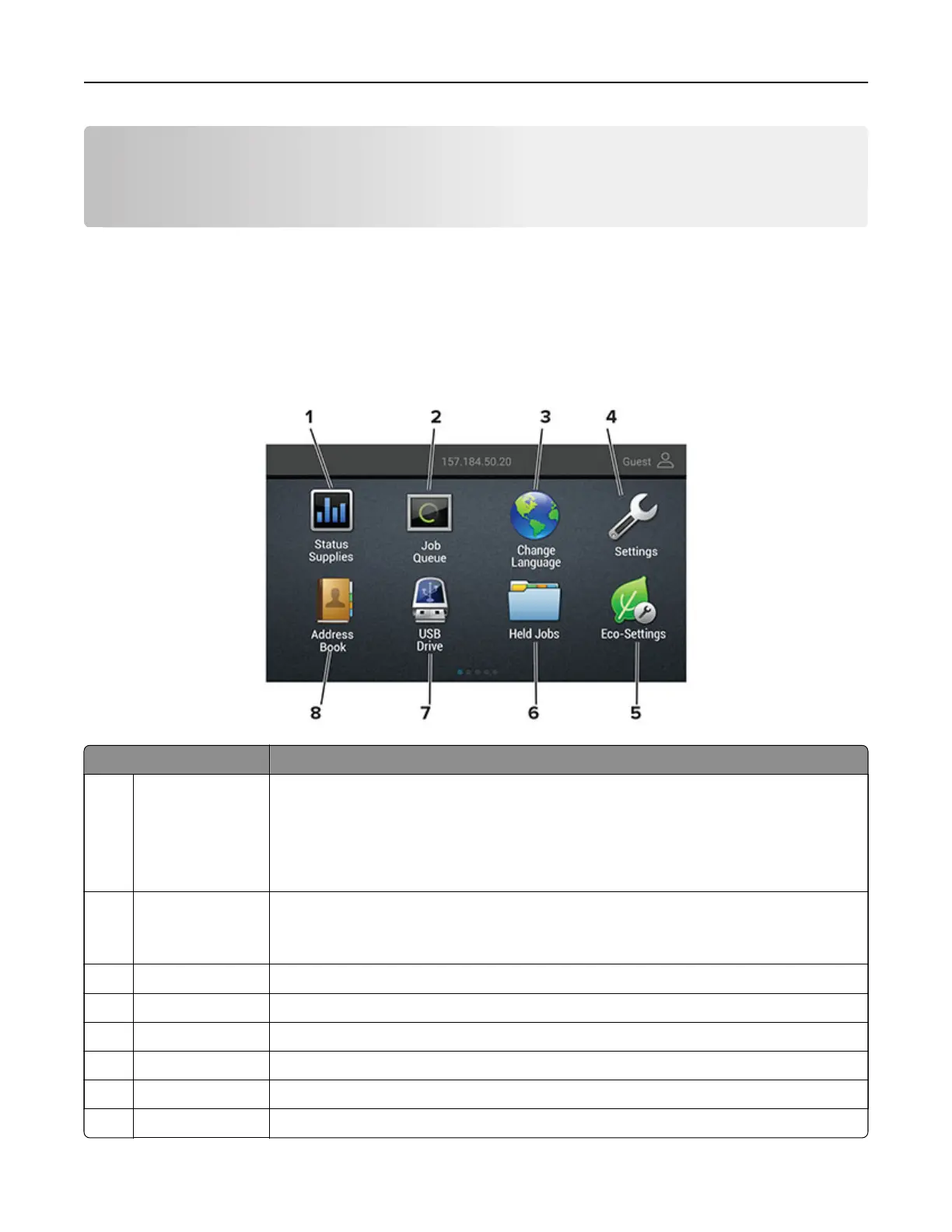 6 Held Jobs Show the print jobs that are held in the printer memory.