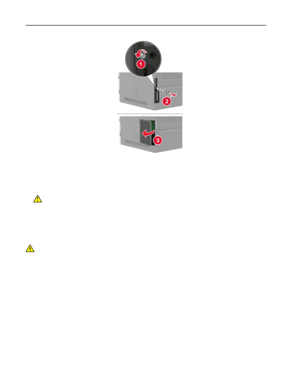 board or installing optional hardware or memory devices sometime after setting up the printer, then turn