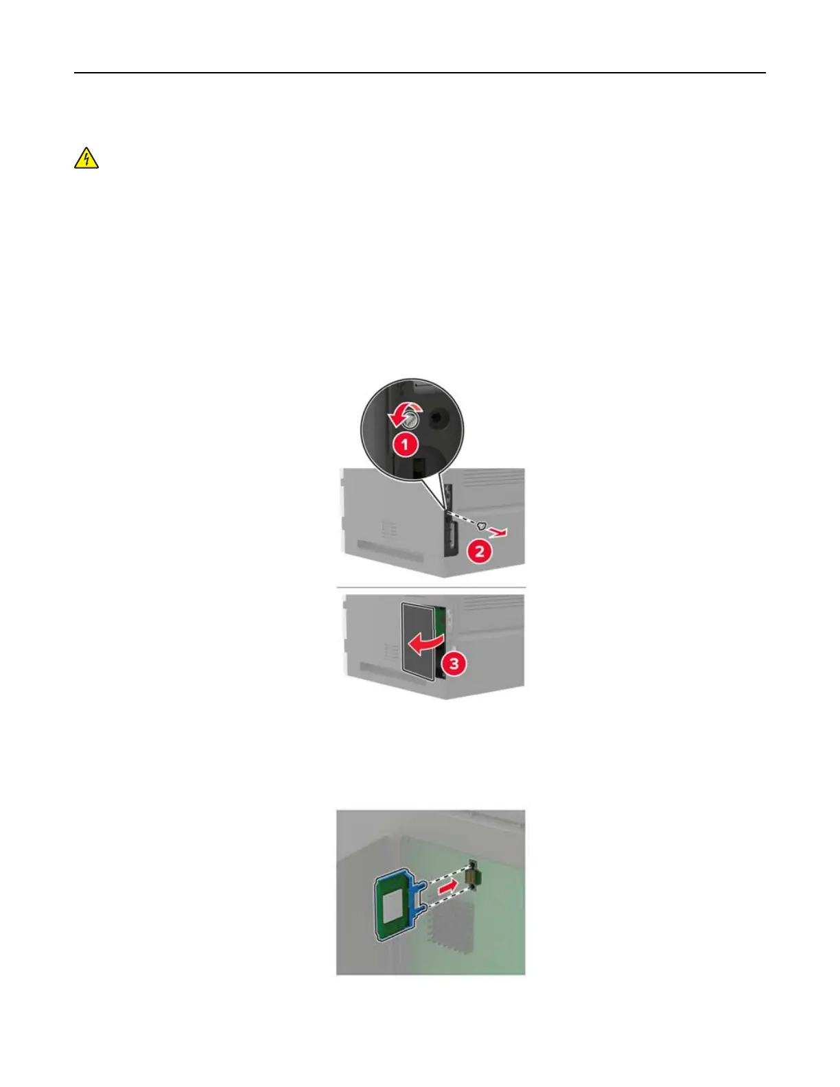 board or installing optional hardware or memory devices sometime after setting up the printer, then turn