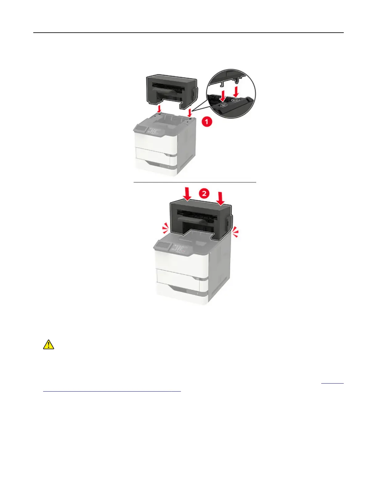 If configured with two or more optional hardware options, then the staple finisher must always be on top.