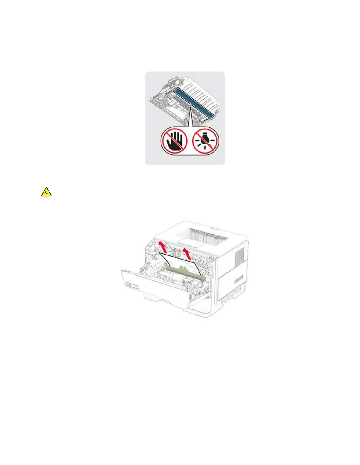 CAUTION—HOT SURFACE: The inside of the printer might be hot. To reduce the risk of injury from a