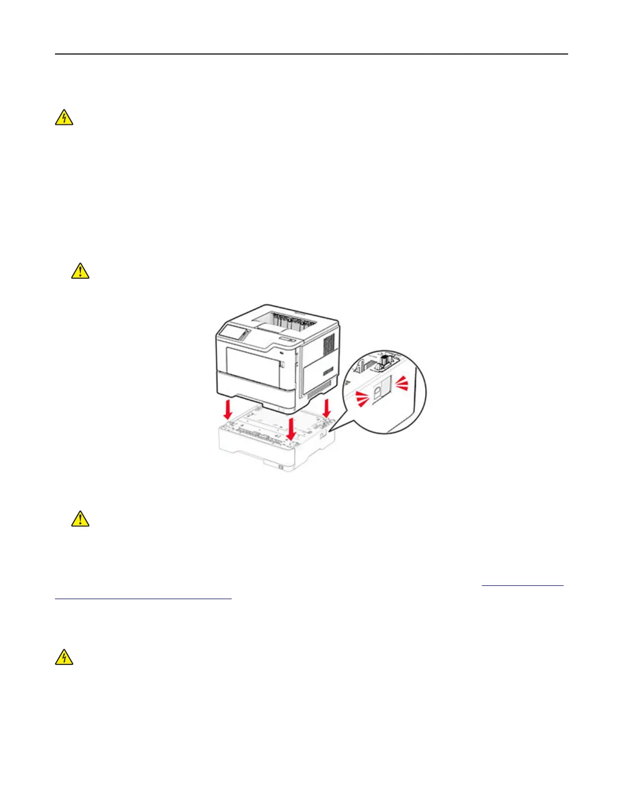 4 Align the printer with the optional tray, and then lower the printer into place.