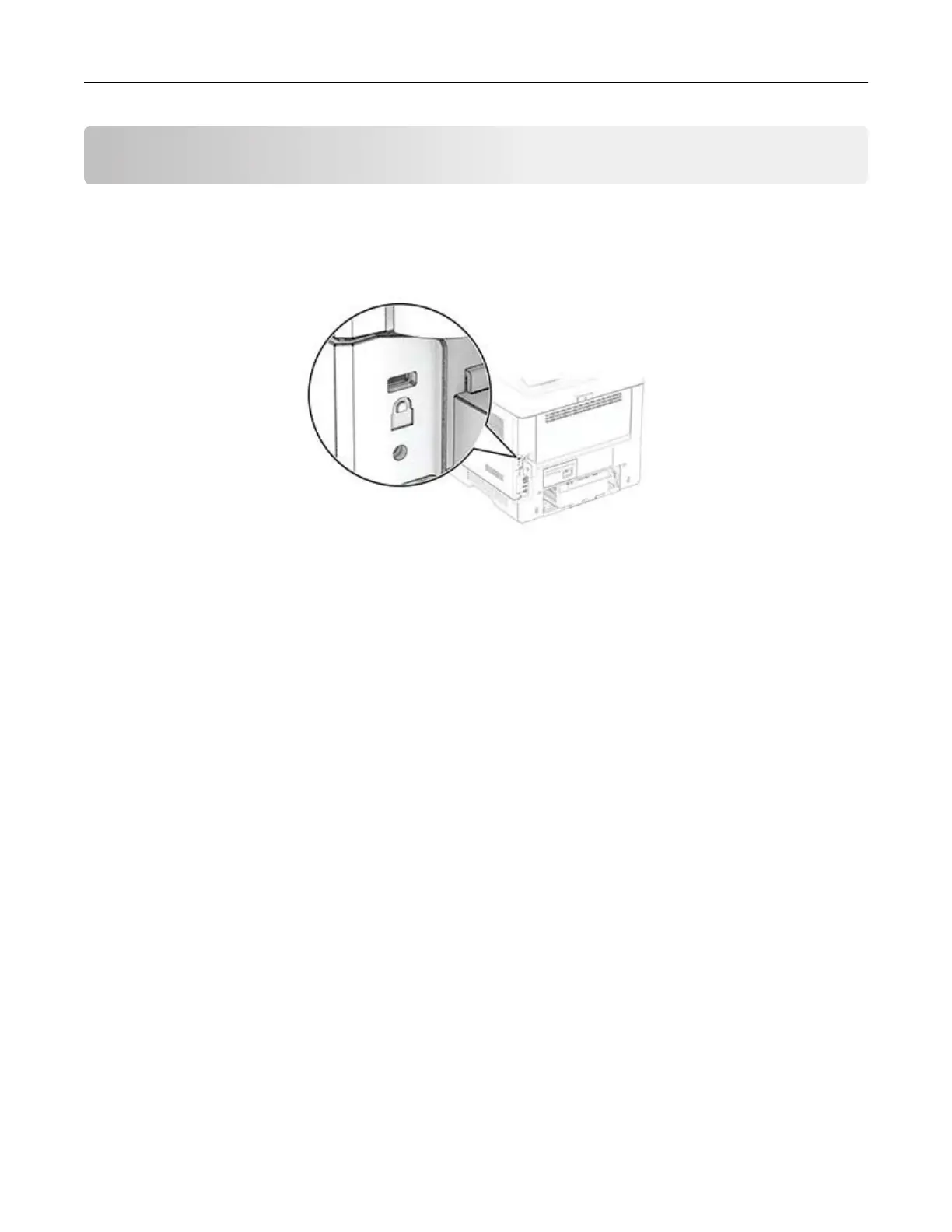 The printer is equipped with a security lock feature. Attach a security lock compatible with most laptop