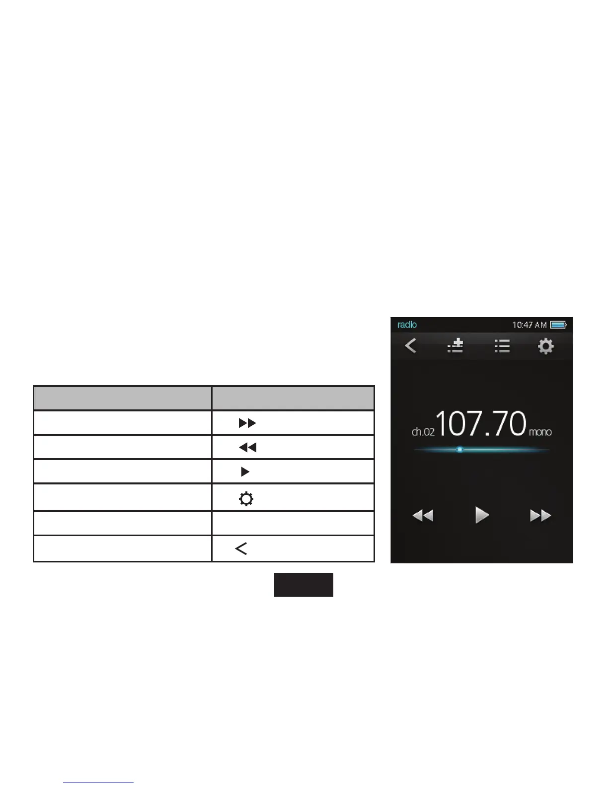 WhenyouchooseRadiofromtheMainmenu,youwillseetheRadioTuning
