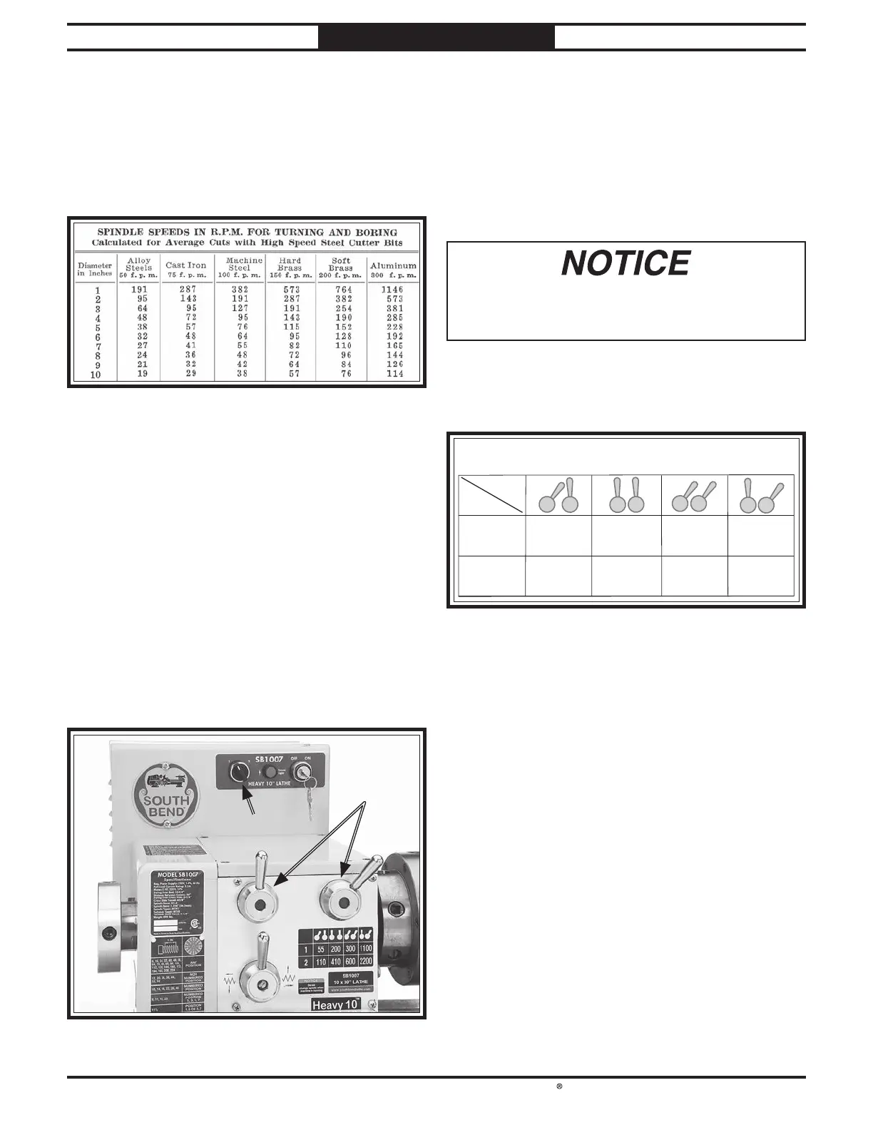 The spindle speed levers (see Figure 55) are