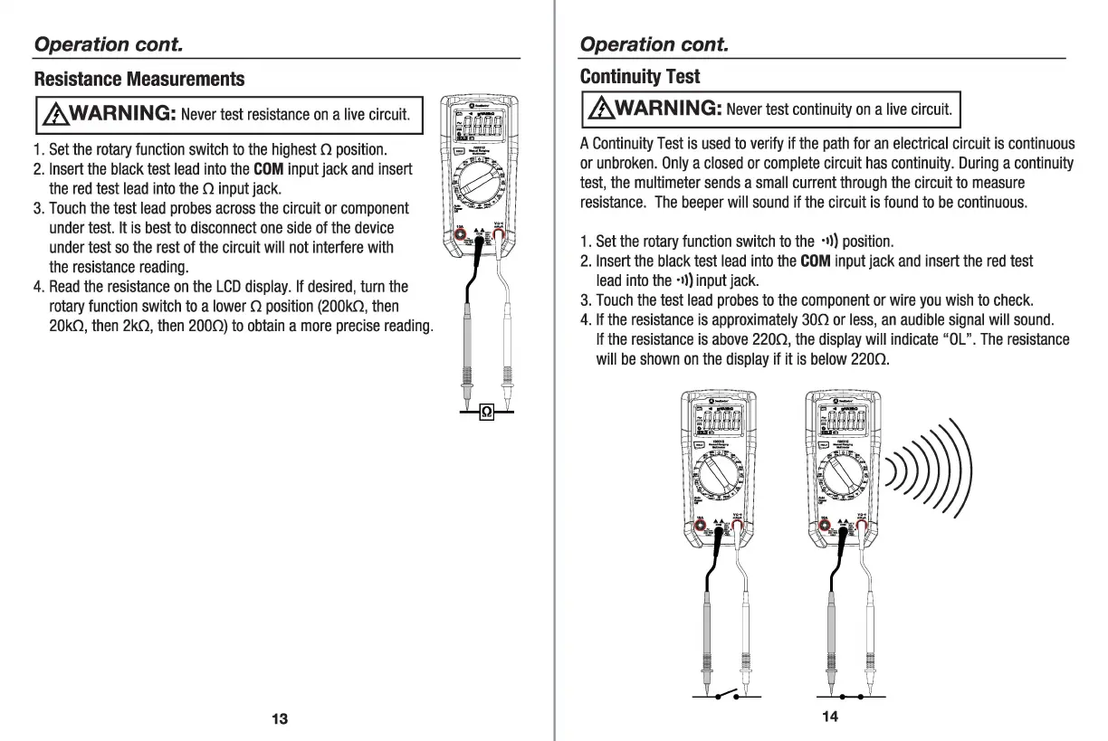 Southwire 10031S - Resistance Measurements; Safety Warning; Measurement Procedure; Continuity Test